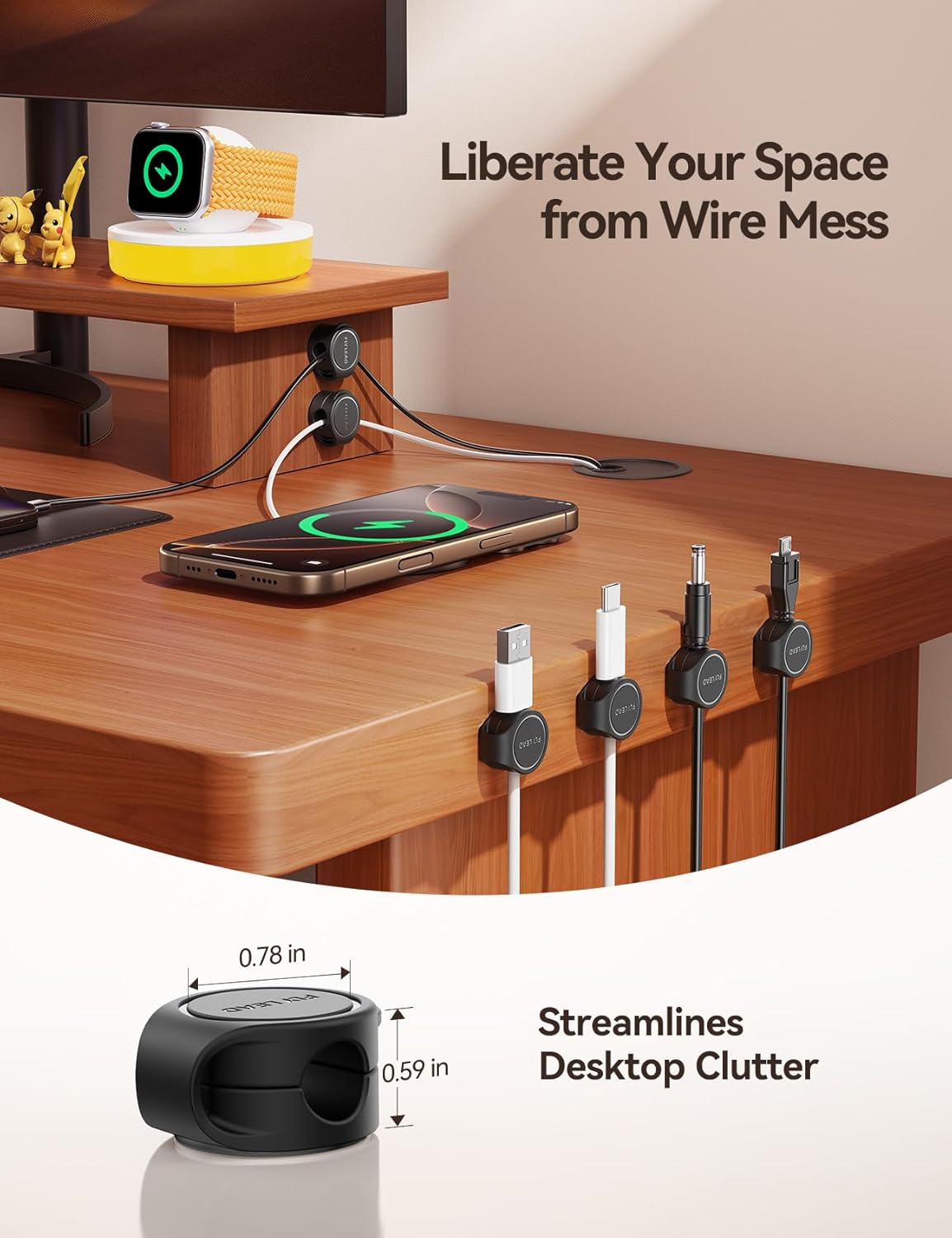 - Special Designed Silicone Magnetic Cable Clips: One-piece silicone molding design FLYLEAD cord organizer with better moldability, the soft silicone material makes this cable organizer more malleable and skin-friendly. After over 10,000 times of tensile tests, the flexible upper and lower joints never broke. With the strongest N55 magnets, covers can be tightly adherent to each other, soft silicone-made FLYLEAD cord holder could embrace cables, which won't squeeze or damage the cables