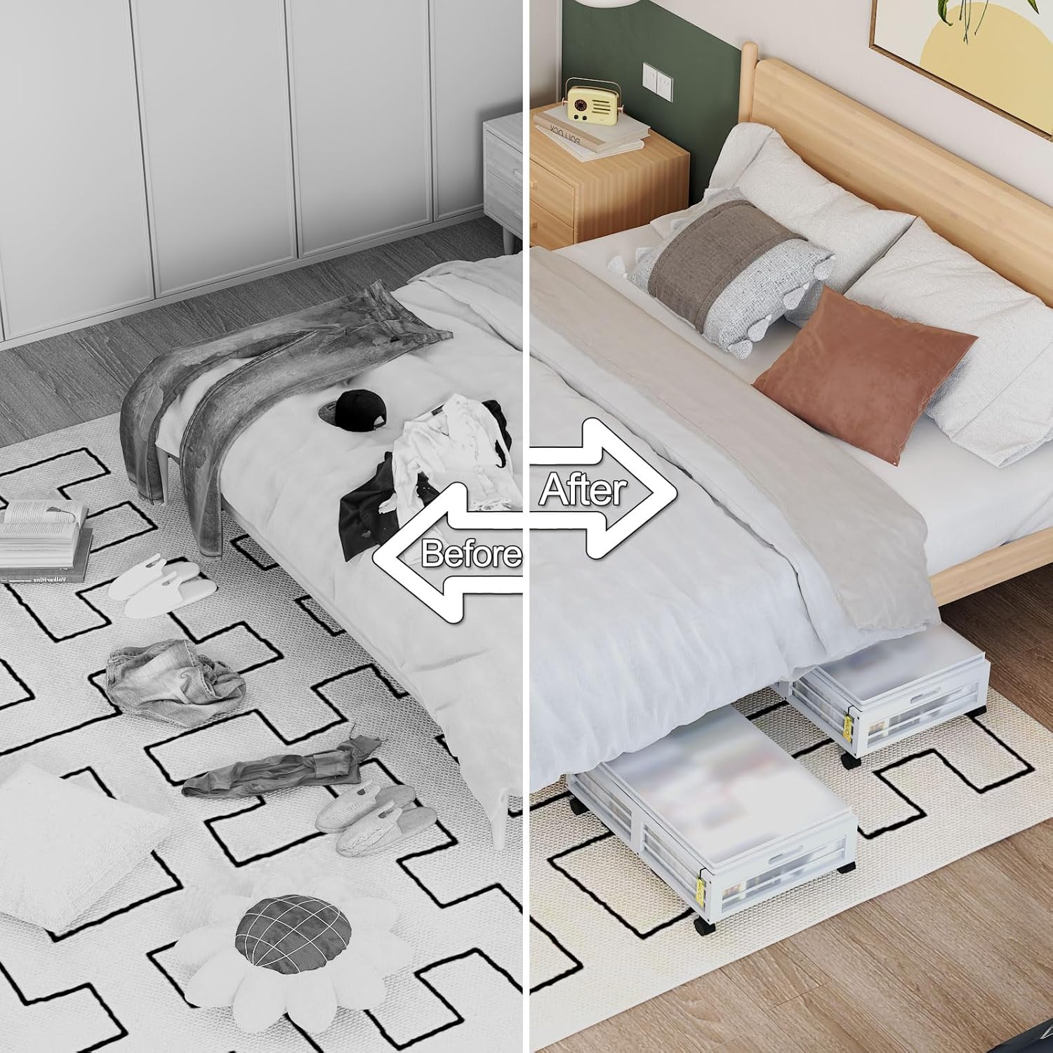 - STACKABLE DESIGN: Detach the rotating wheels to flatten the bottom, then align and stack under bed drawers tightly for stability without shaking, switching from movable to vertical storage.
