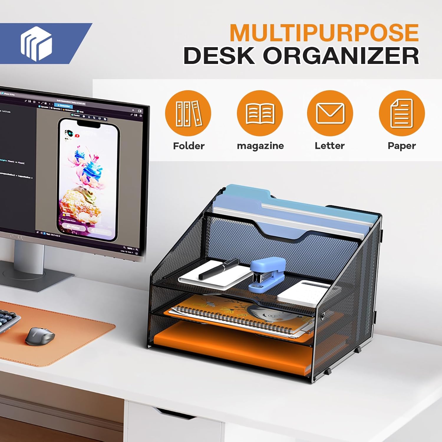 - Unique Design: 3 horizontal trays for storing letters and other office essentials, and rear 2 upright area for file folders.