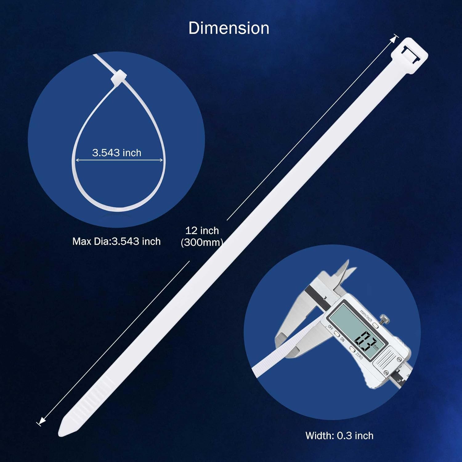 Cable Zip Ties 100 Pack, 12 Inch Zip Ties Heavy Duty, 120lbs Tensile Strength Wire Ties, White Cord Organizer for Indoor and Outdoor. By LOKANG