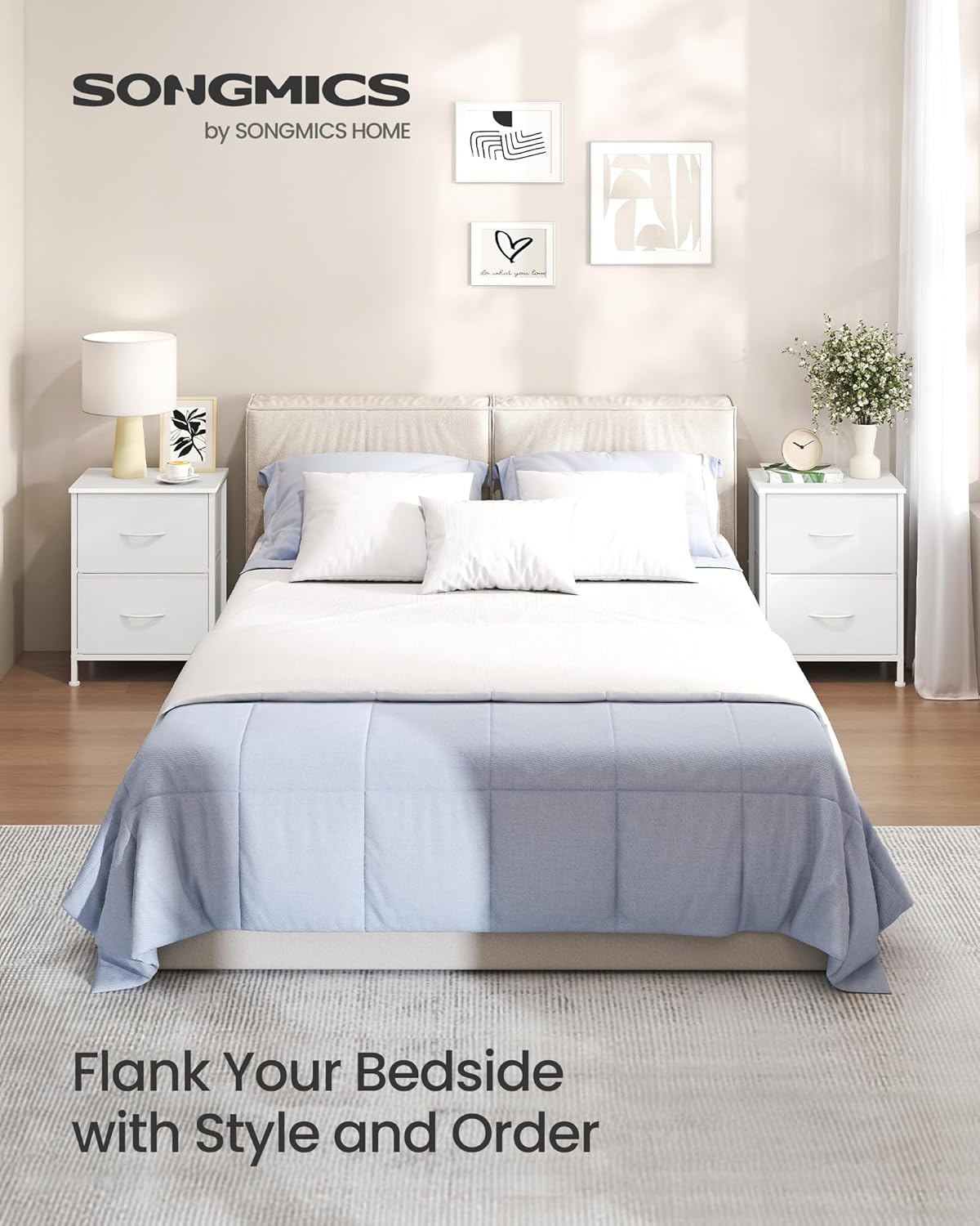 SONGMICS Dresser for Bedroom, Chest of Drawers, Nightstand, Steel, MDF, 2 Non-Woven Fabric Drawers, Storage Organizer Unit, Closet, Entryway, Cloud White and Snow White ULGS312W01S