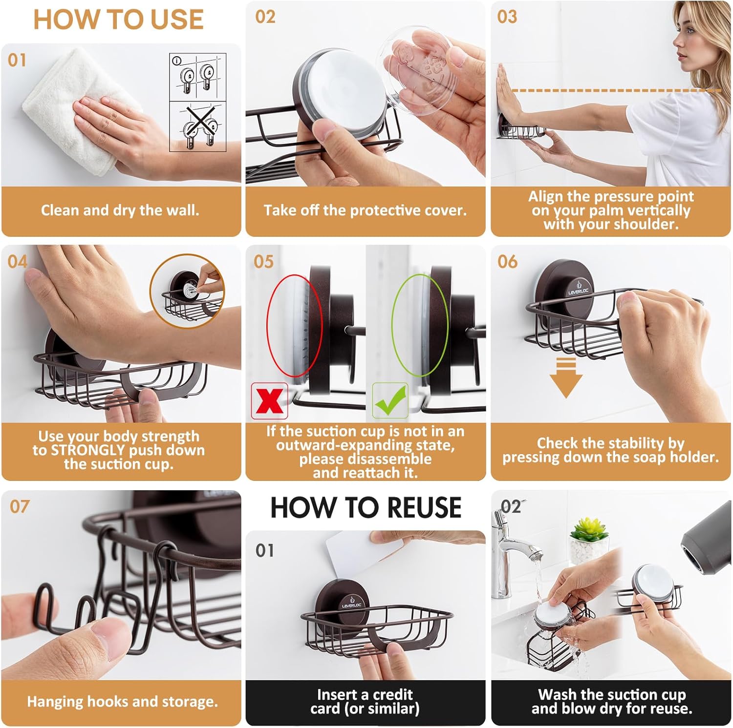 - EASY CLEAN REMOVAL: The bar soap tray can be easily removed and reinstalled in a new location for repeated use. Simply use a credit card to release the suction cup, then wash it with warm water before reinstalling. Suitable for storing various sizes of soap to meet different needs, our unique vacuum suction cup soap holder is particularly ideal for bathrooms, kitchens, RVs, laundry rooms or storage rooms