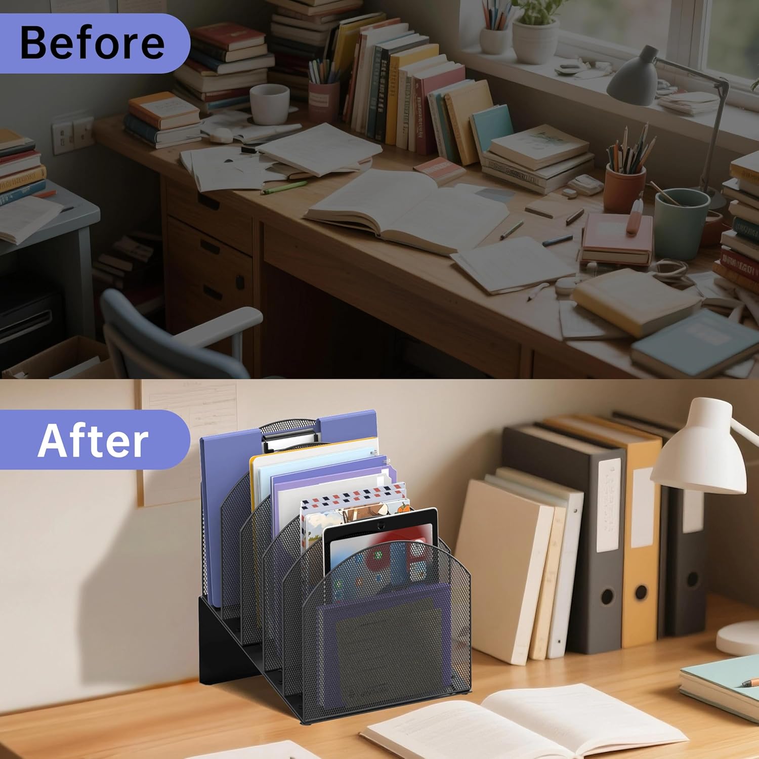 - Quality Assurance: Constructed from durable metal mesh and a sturdy steel base, this file organizer for desks is built for long-lasting daily use. With high quality powder coat, it provides durability, stability and resistance to wear