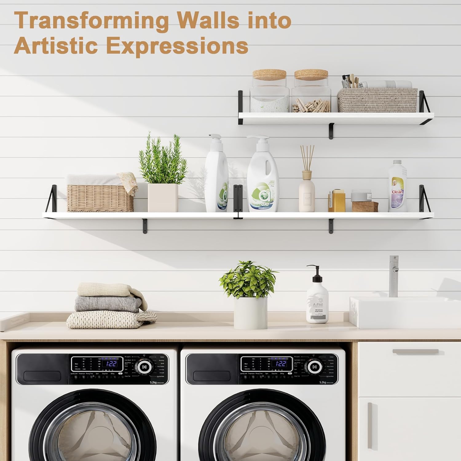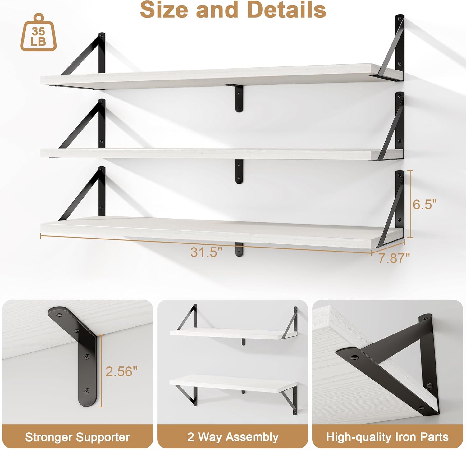 - 【Space-Saving Wall Bookshelf】Our 31.5"W × 7.87"D floating shelves for wallscombine minimalist design with everyday practicality. Whether used to display small indoor plants, photo frames, or favorite books, these versatile floating bookshelves help declutter your home by freeing up valuable floor and counter space—perfect for bedrooms, living rooms, offices, or laundry areas.