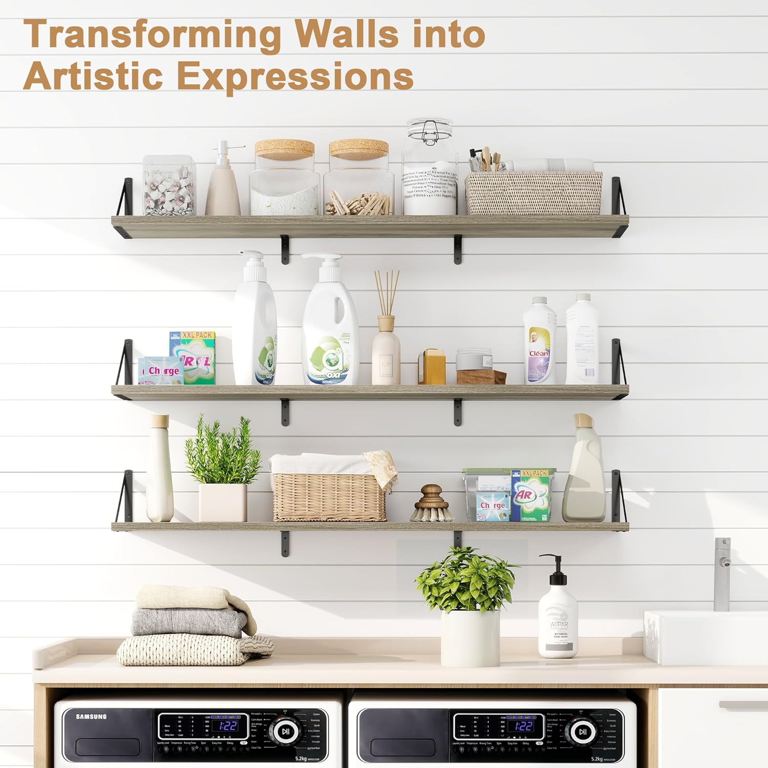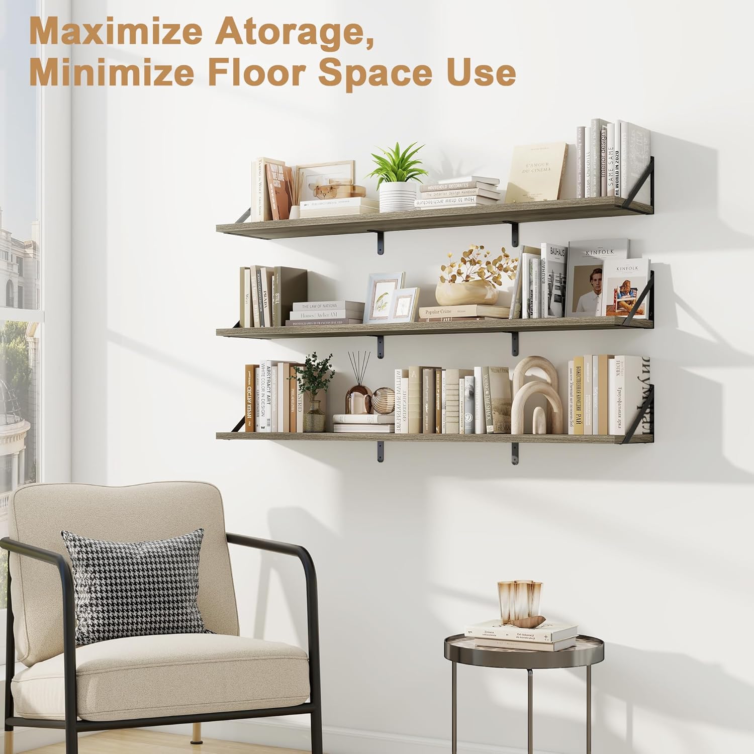 - 【Space-Saving Wall Bookshelf】Our 47.2"W × 7.87"D floating shelves for wallscombine minimalist design with everyday practicality. Whether used to display small indoor plants, photo frames, or favorite books, these versatile floating bookshelves help declutter your home by freeing up valuable floor and counter space—perfect for bedrooms, living rooms, offices, or laundry areas.