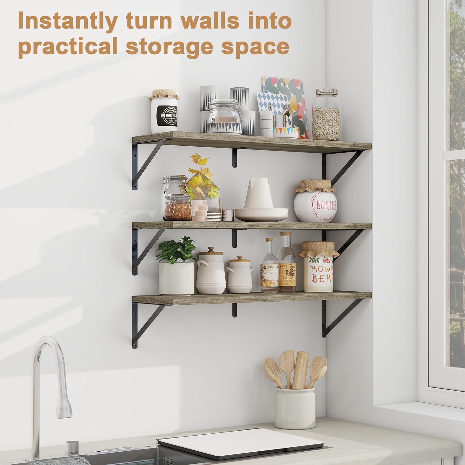 - 【Multi-room & Multi-use】Designed for both function and elegance, these three wall-mounted wood shelves adapt effortlessly to different rooms. Use them to store spices in the kitchen, organize toiletries in the bathroom, or displayframed photos and decorative pieces in the living room. The floating wooden bookshelf addsa refined touch of personality and order to your space.