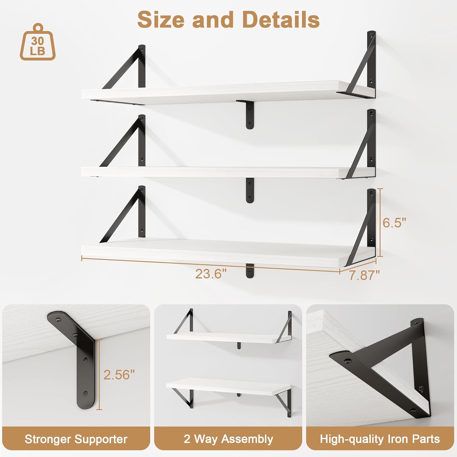 - 【High Stability & Easy Installation】The wall-mounted shelves feature classic triangular brackets and reinforced central metal frames; each shelf supports up to 30 lbs with exceptional stability. All hardware is included, along with detailed step-by-step instructions for a smooth and quick DIY assembly—ideal for living rooms, home offices, or classroom displays.