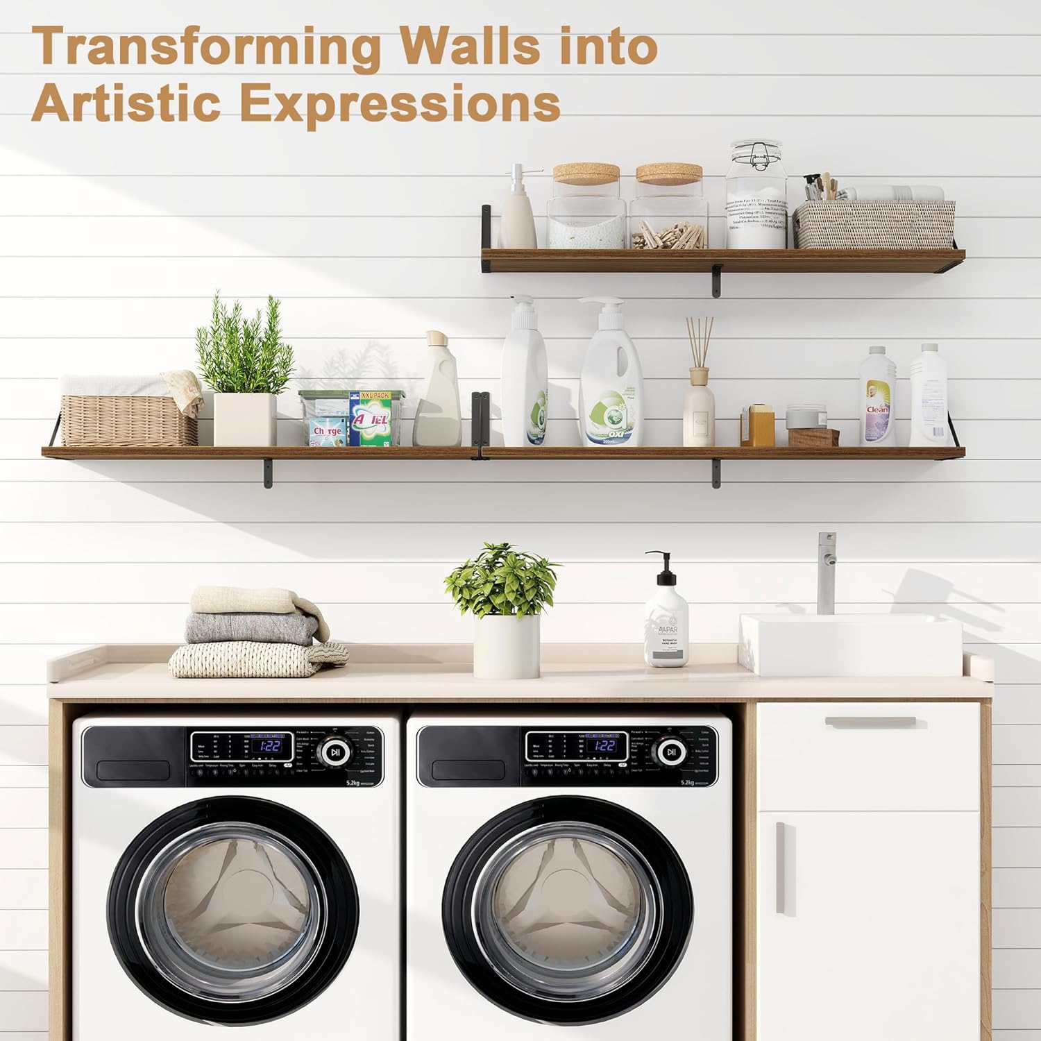 - 【Space-Saving Wall Bookshelf】Our 39.4"W × 7.87"D floating shelves for wallscombine minimalist design with everyday practicality. Whether used to display small indoor plants, photo frames, or favorite books, these versatile floating bookshelves help declutter your home by freeing up valuable floor and counter space—perfect for bedrooms, living rooms, offices, or laundry areas.