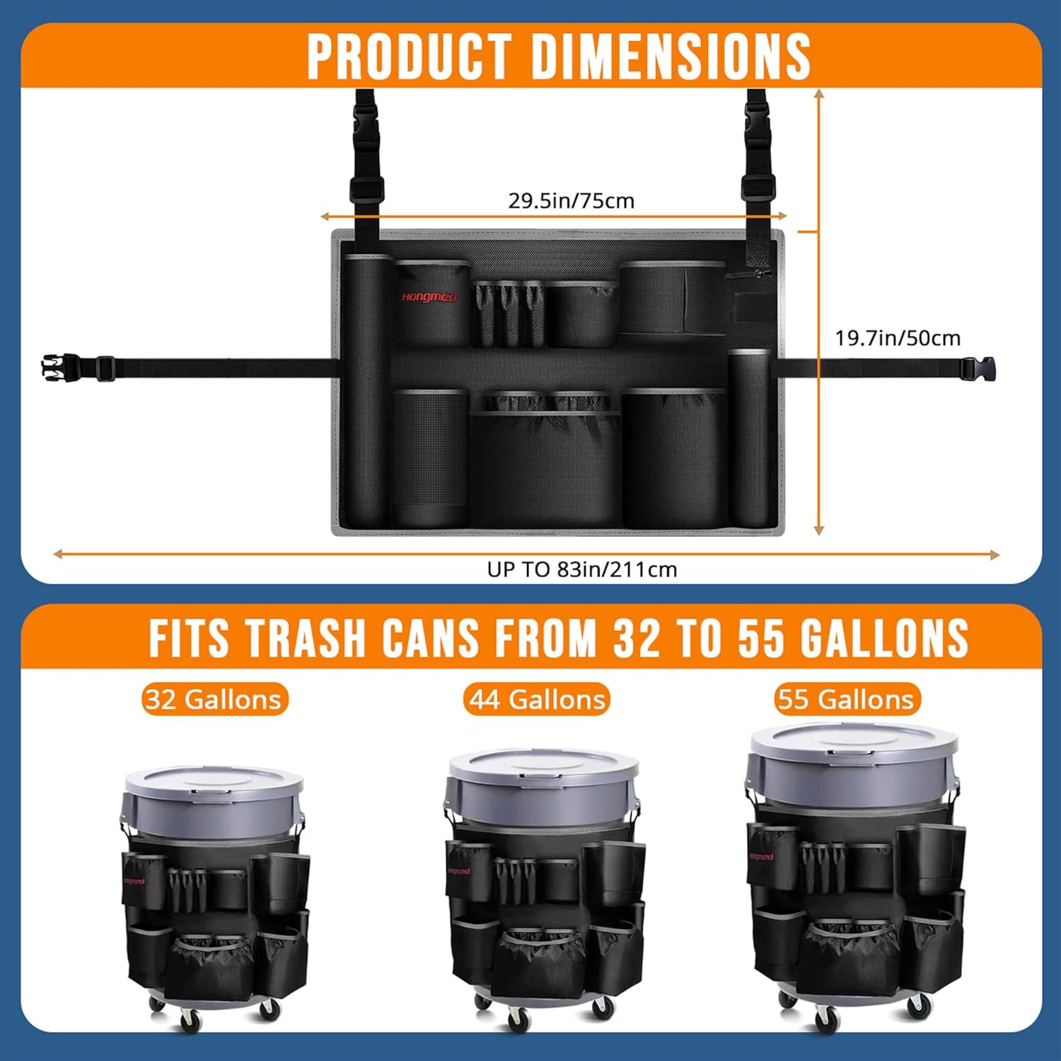 Trash Can Caddy Bag for 32-55 Gallon Garbage Bin, Hongmed Caddy for Commercial Cleaning Supplies, Multi-Pocket Utility Apron with Adjustable Straps, Heavy-Duty Nylon Organizer for Janitorial Duties