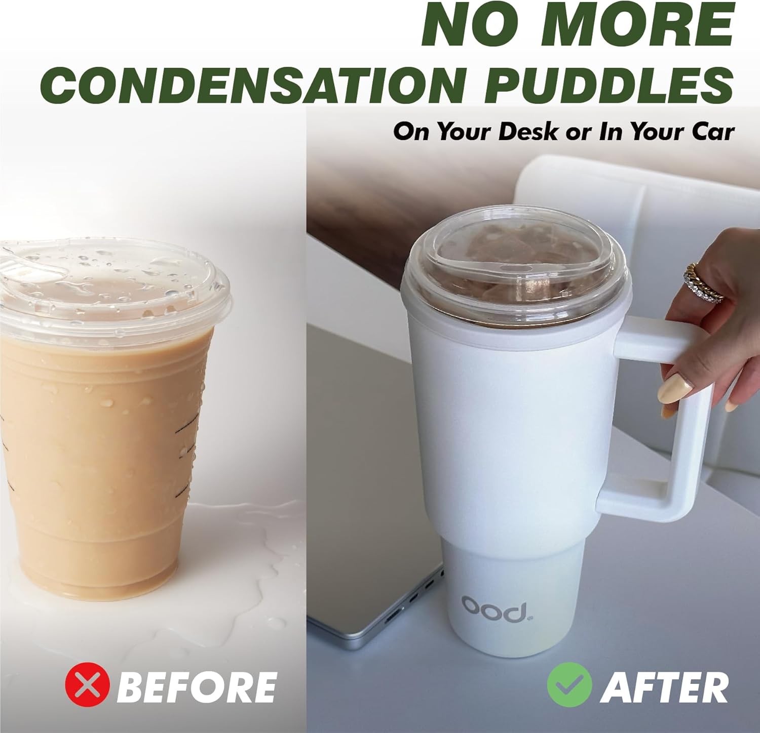 OOD OniVerso 40 oz Stainless Steel Insulated Tumbler with Handle and Straw, Iced Coffee Cup Holder for Disposable Cups, Leak Proof Tumbler, Metro Fog (White)