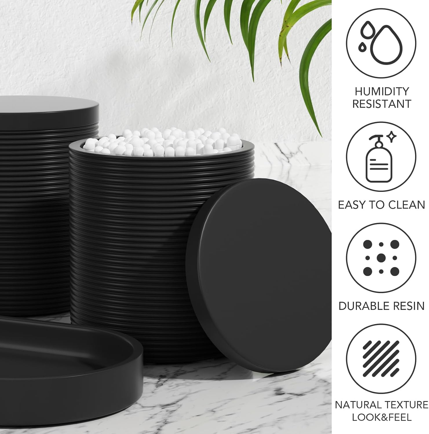 6-Piece Bathroom Accessory Set Resin, Black Bath Accessories Complete with Toothbrush Holder, Lotion Soap Dispenser, 2 Qtip Holders,Vanity Tray,Bathroom Tumbler - Countertop Vanity Organizer