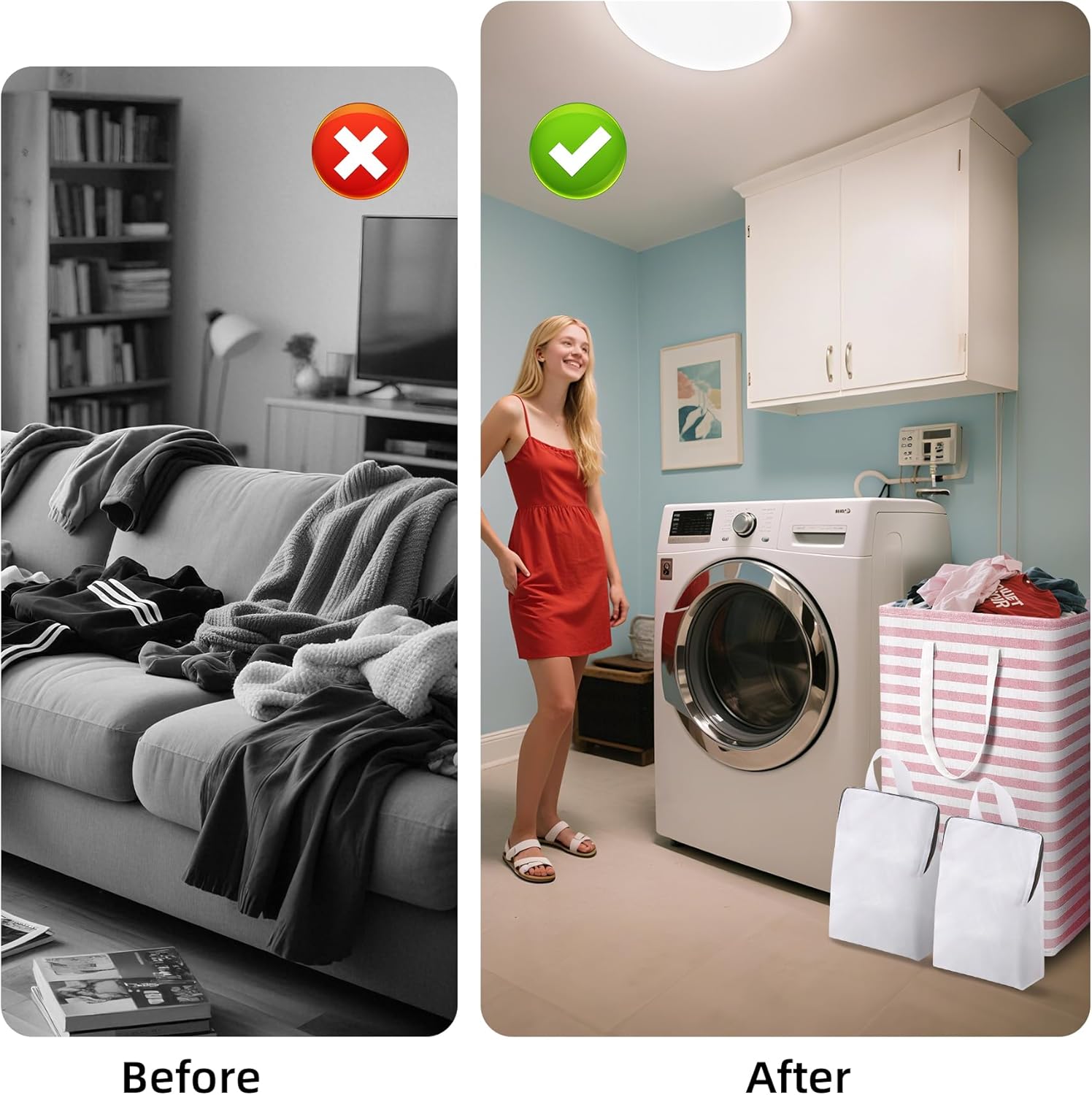 - 2 Mesh Laundry Bags Included – Comes with two free laundry net bags, good for sorting shirts or sensitive clothing while washing. Handy for home storage and easy laundry routines