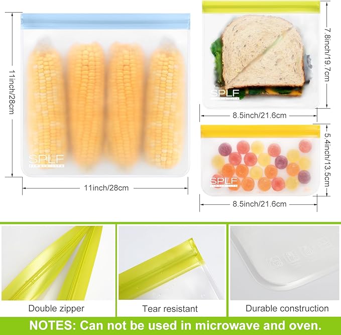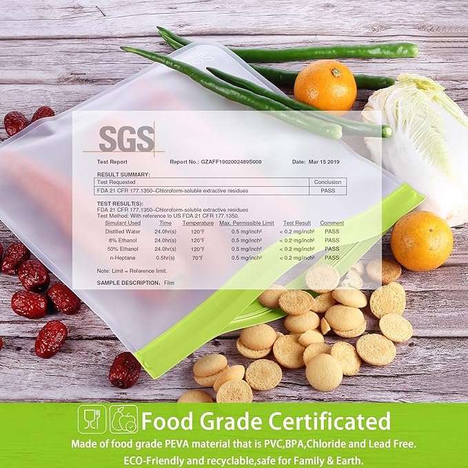 - Food Grade Material: Choose SPLF brand for Truly food-grade reusable storage bags for food. Made of extra thick food-grade Peva material that is PVC, BPA, Chloride and Lead free. Healthy and safe for family and earth.