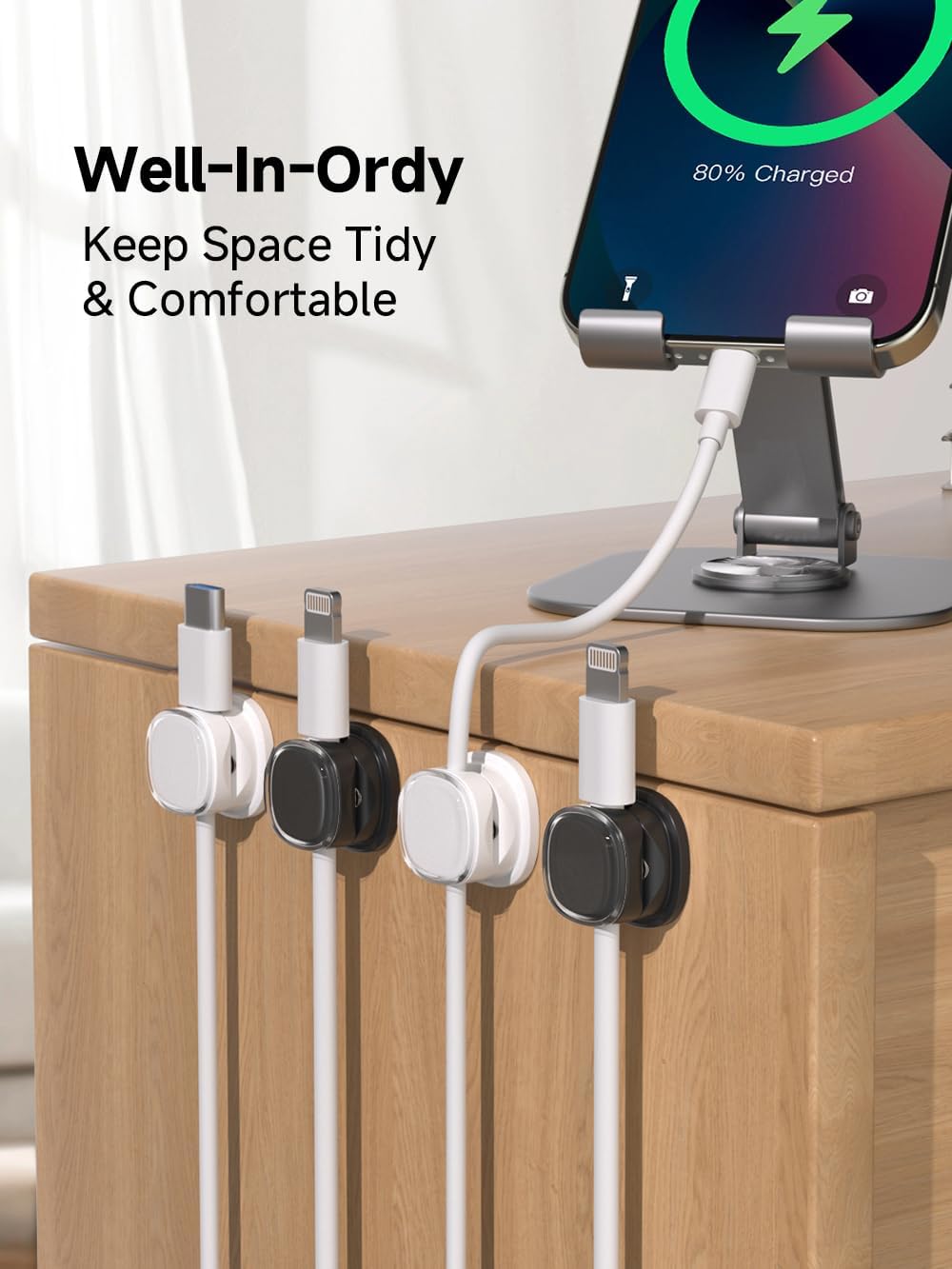 - Magnetic Locking & No Falling Off: Secure magnetic grasp opening and closing allow easy cord in,and powerful magnetic lock the organizer firmly to hold any charging head without falling off, more convenient to pull the cables out for smoothly using