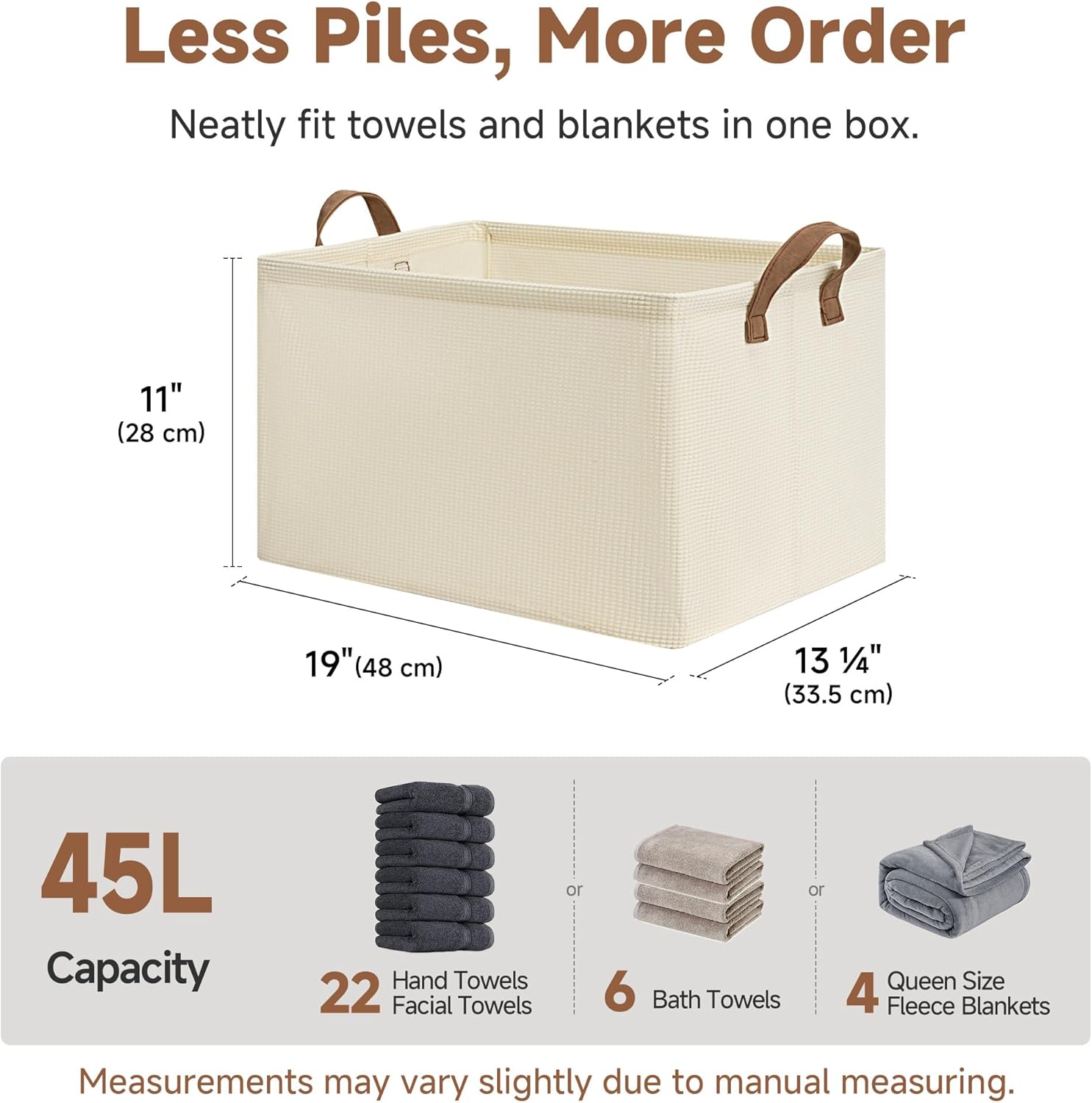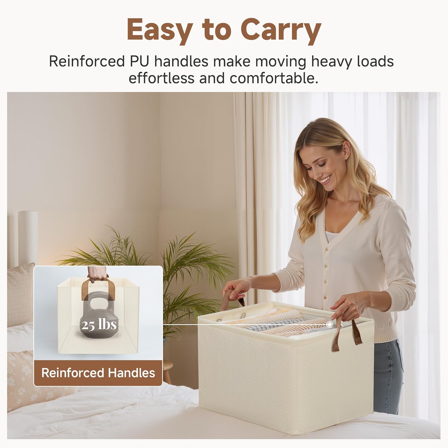 - Handle with Ease: With the 2 PU handles securely riveted to the sides of the storage bin, you can easily carry items without tearing the handles.