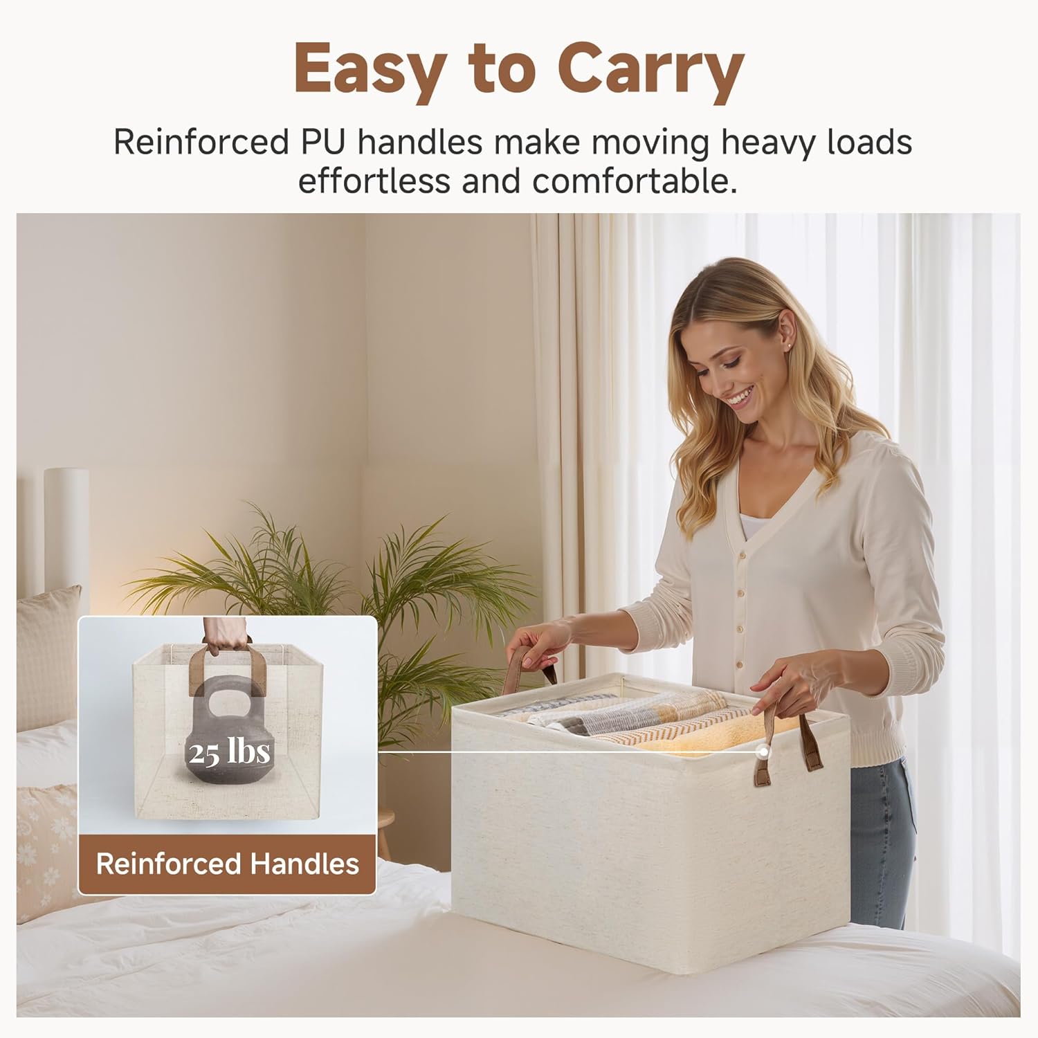 StorageWorks Storage Bins, Shelves Baskets for Organizing, 45L Extra Large Fabric Closet Organizers with Handles, Metal Frame, Beige(Cotton-linen), 2-Pack