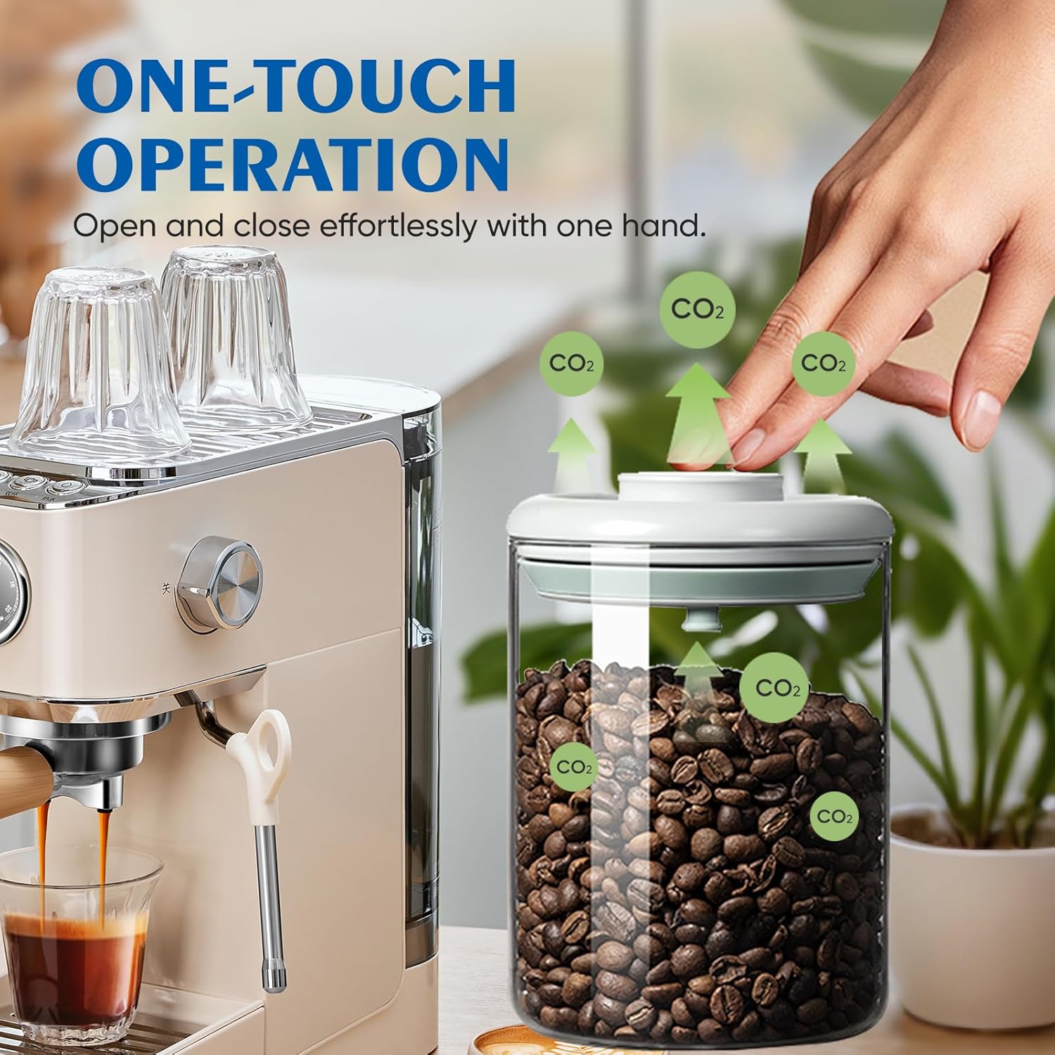 - 【Easy to Open/Close】Featuring innovative push-button mechanism, this coffee storage airtight canister opens instantly with single-hand pressure - no twisting or lifting required.