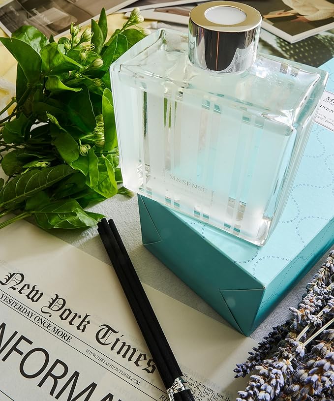 - Scent Reed Diffuser - M&SENSE reed diffuser set comes with 7 oil diffuser sticks, an elegant glass vessel with premium natural essential oil (7.04oz/200 ml). This scented Diffuser can provide a continuous fragrance for 60 to 95 days.