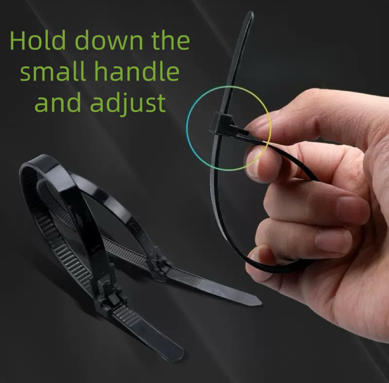 - Easy to use:Just press the unlock lever to easily open and close it, and adjust the tightness with ease, which can make even messy cables neat and beautiful. Moreover, it can be reused, avoiding the waste when using ordinary cable ties.