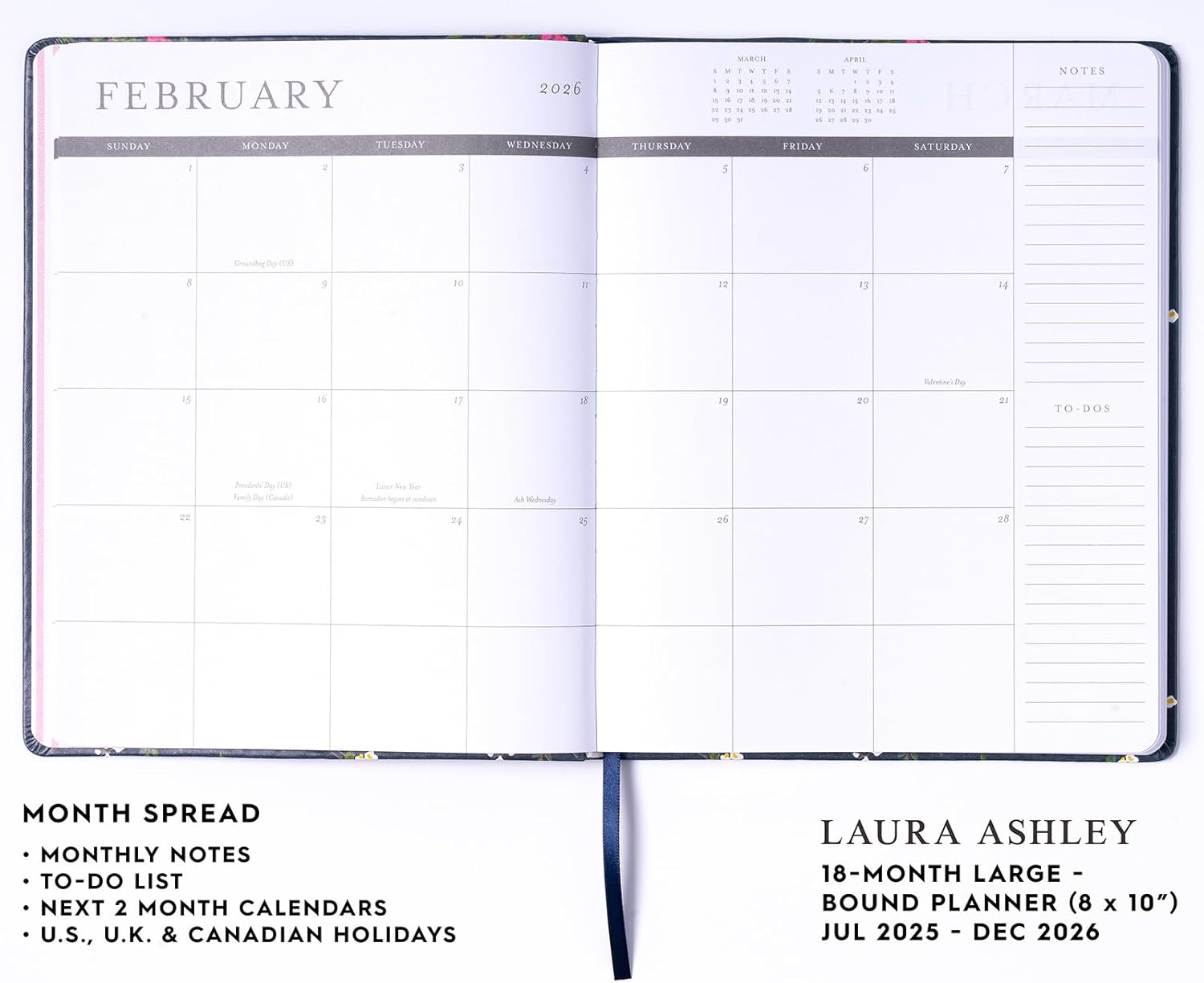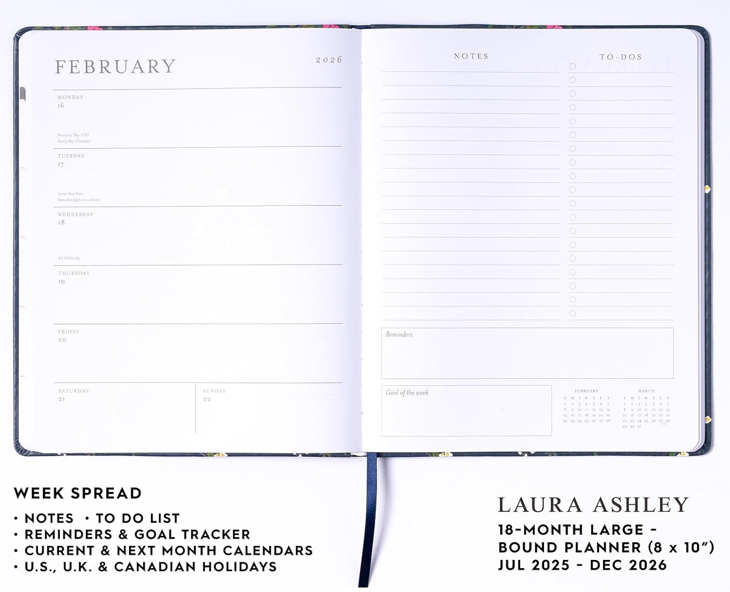 Laura Ashley 2025-2026 Large Agenda Planner, 18 Month, Monthly & Weekly Pages (8 x 10" | July 2025-Dec 2026)