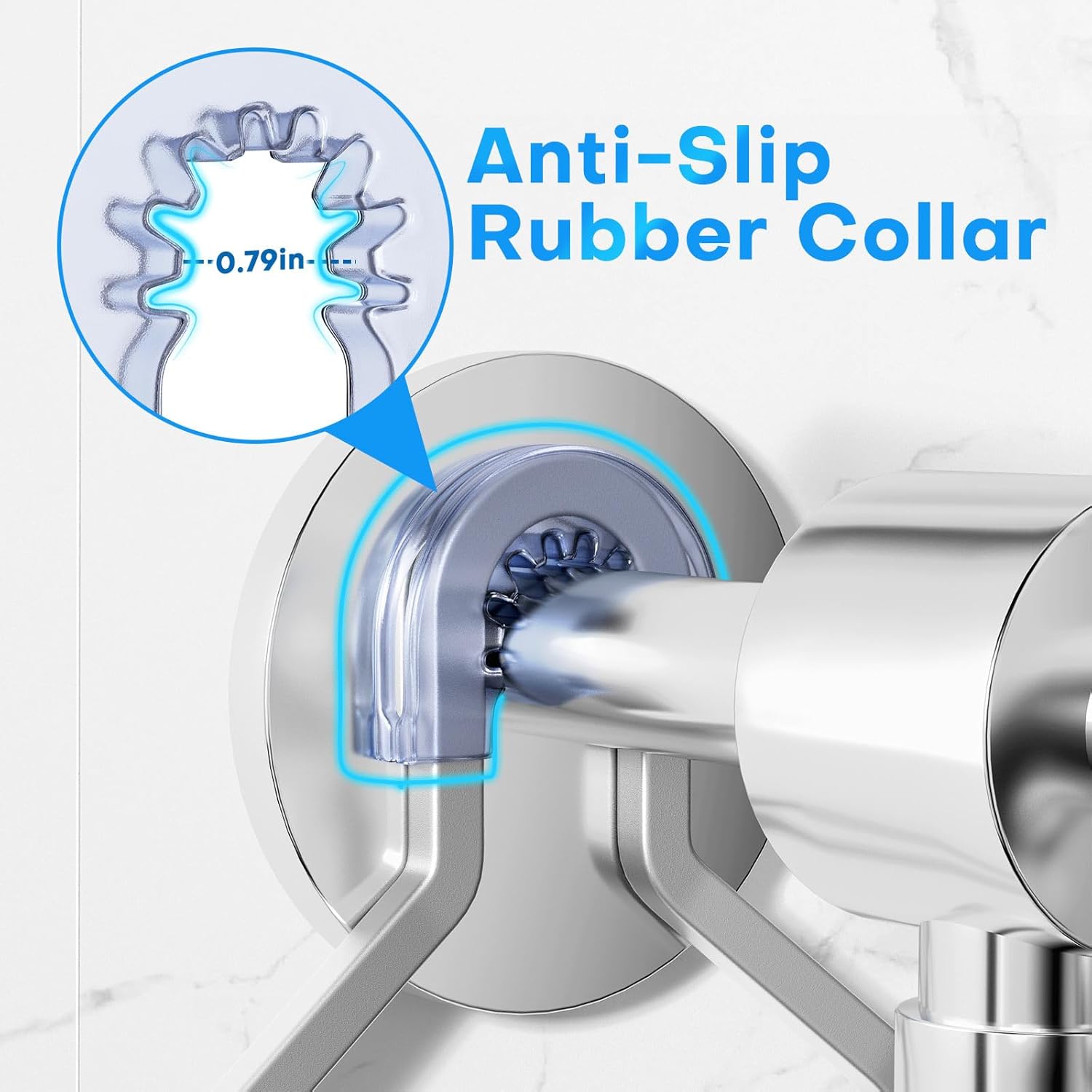 - [Safety and Anti-Slip Design] - The top of shower caddy rustproof equipped a rubber ring for anti-slip stability when mounted on the showerhead.Furthermore,4 strong adhesive sticker ensure over shower head organizer is securely fixed in place,even when loaded large capacity items,it won't shake or fall off,providing a safe and reliable storage solution.