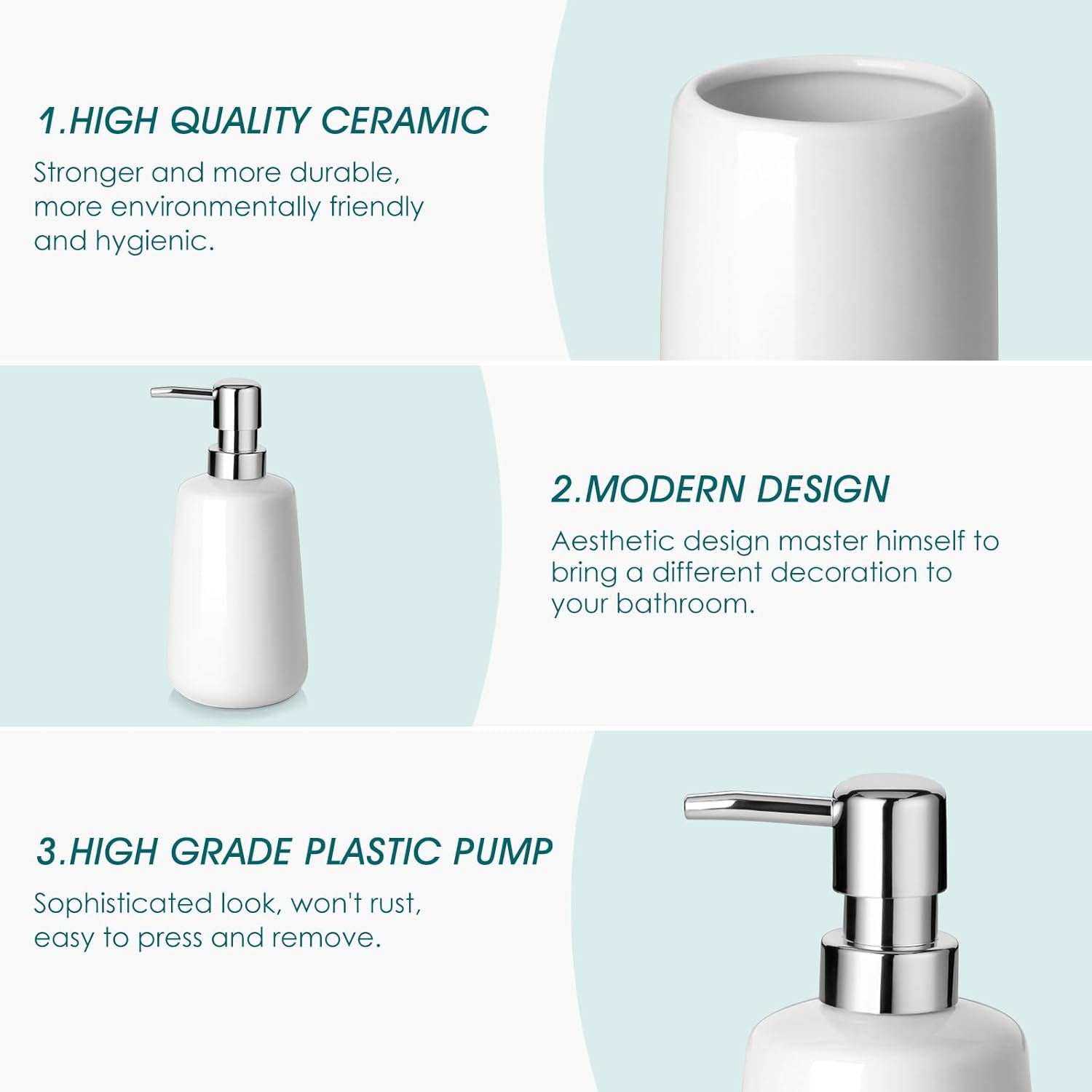 - 【Anti-Drip Pump Head Design】Bathroom set features an upgraded plastic pump head design that is easy to press and leak-proof, effectively preventing liquid from splashing onto the countertop. It also has anti-rust properties, allowing you to use it cleanly and hygienically for bathing