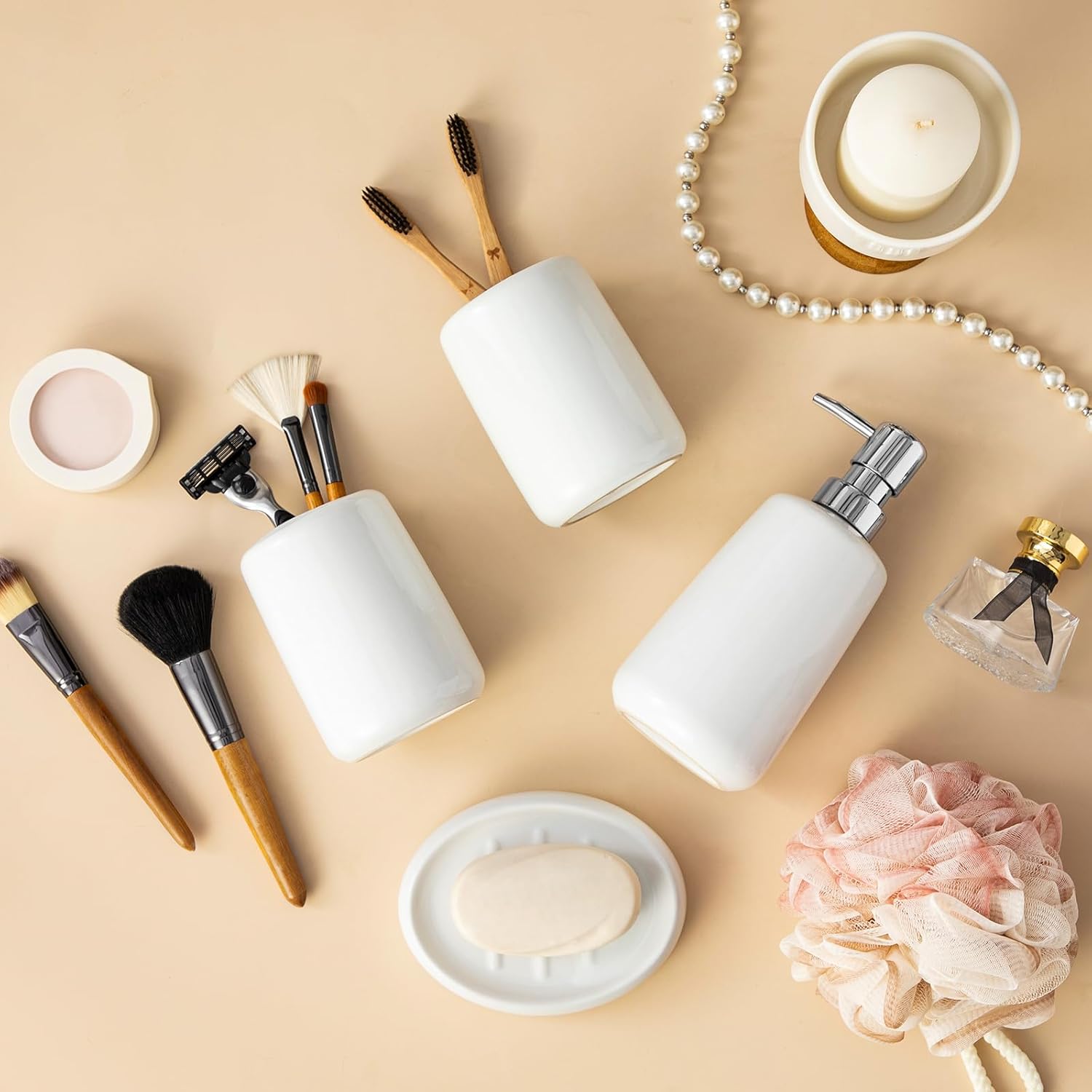 vancasso White Bathroom Accessories Set, Ceramic Soap Dispenser and Toothbrush Holder Sets, Stoneware 4 Pcs Bathroom Sink Set for Modern Home Decor