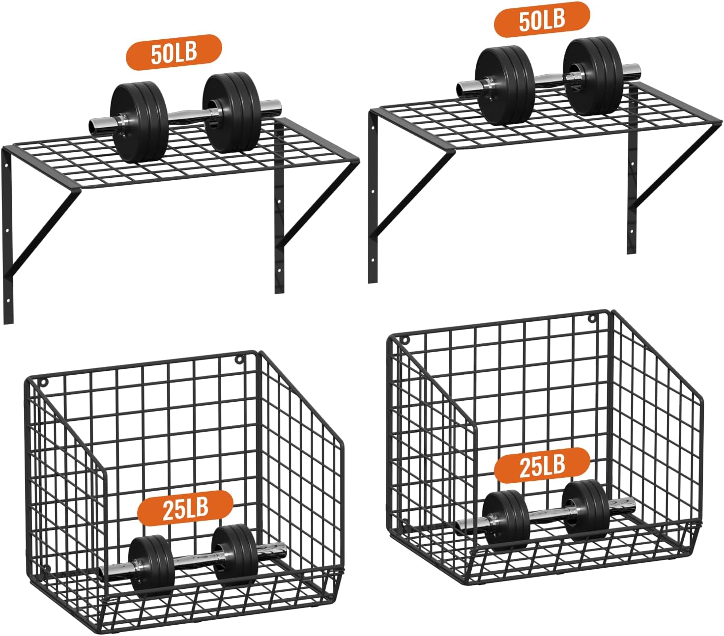 - Durable Wall Mounted Storage: The set includes 2 shelves, 2 baskets and 2 dividers. This heavy-duty Wall Mounted Storage unit is built to withstand daily use. Its sturdy steel construction resists wobbling, ensuring stability and safety above your appliances. The basket is suitable for dry clothes, and freshly washed clothes are suitable for hanging on the bottom of the basket with hangers.