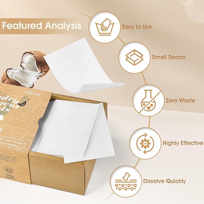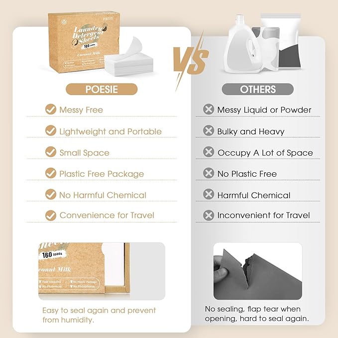 Poesie Laundry Detergent Sheets Coconut Milk Scent 160 Count Non Plastic Jugs Portable Laundry Soap Sheet for Clothes Washing Indoor and Outdoor Essentials
