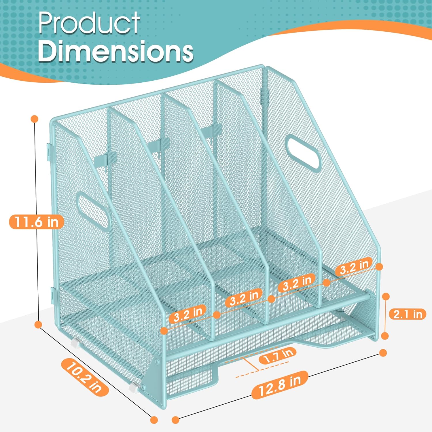 Desk File Folder Holder Organizer-4 Vertical Compartments Racks and Paper Letter Tray,Mesh Magazine File Holder Sorter,Desktop Accessories & Workspace Organizers for Home,Office,School-Blue