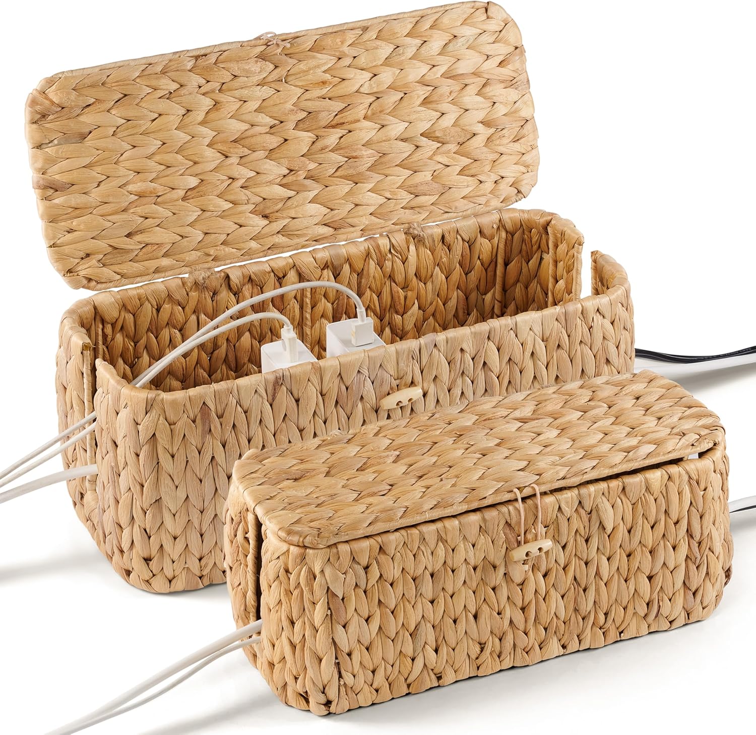 Large Cable Management Box, Natural Rattan Cable Cord Organizer Boxes for Power Strip ā 2 Open Slots Cords Hider Box for TV Wires, Computer, Router, USB Hub and Under Desk Power Strip (Hyacinth)