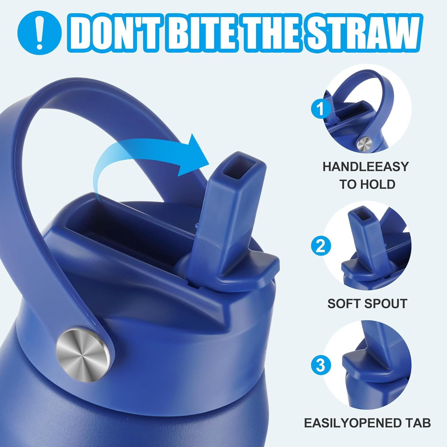 OLDLEY kids Water Bottle - 18oz Insulated Stainless Steel - Wide Straw Lid, Non Spill, Leakproof, Kids Water Bottle for School,Blue