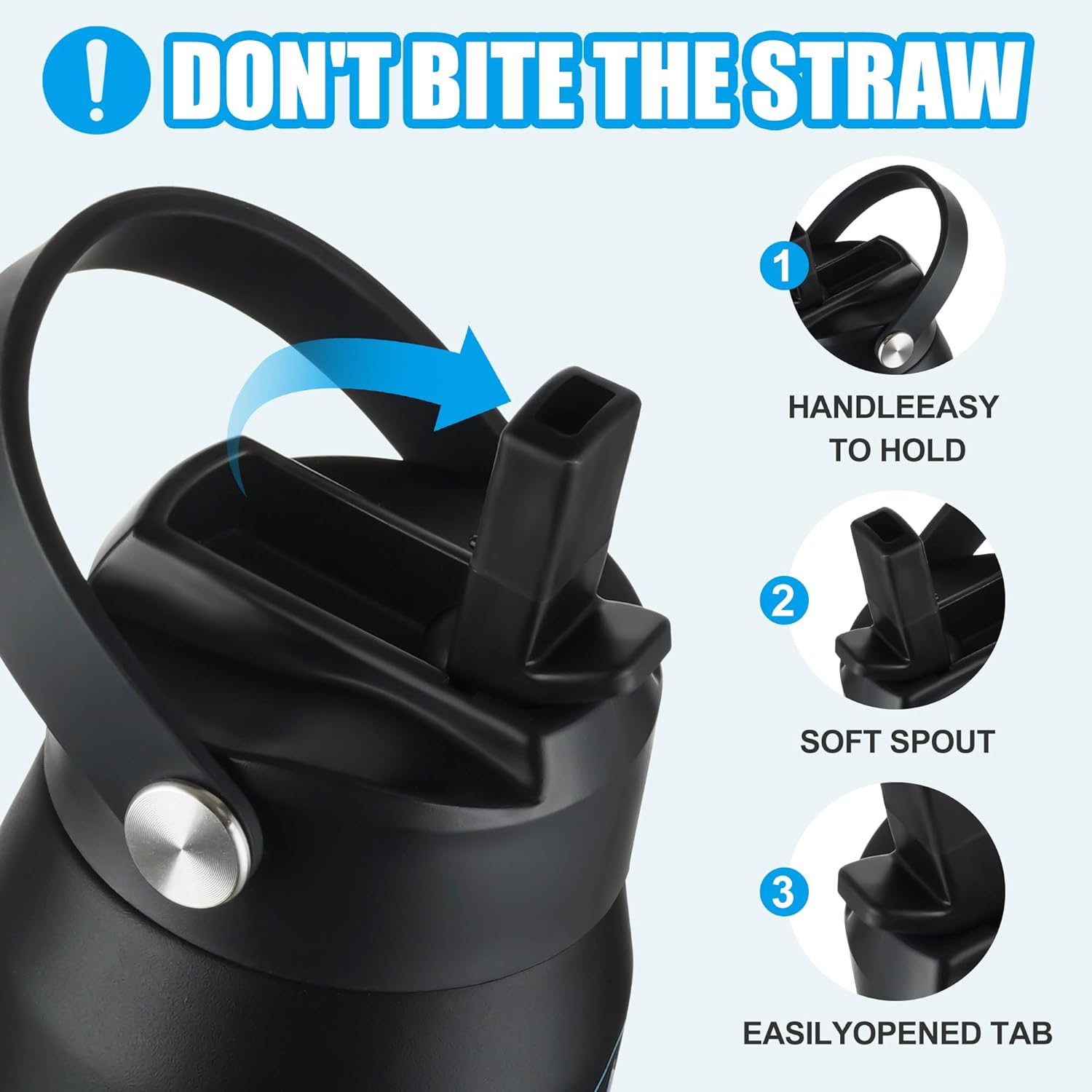 - Easy Hydration On the Move:Sip effortlessly from the spout lid while hiking or racing to class. The non-slip silicone grip and carabiner-ready handle add security for busy days or mountain climbs