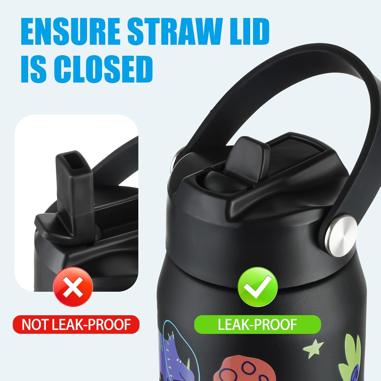 OLDLEY kids Water Bottle - 18oz Insulated Stainless Steel - Wide Straw Lid, Non Spill, Leakproof, Kids Water Bottle for School,Space Dinosaur