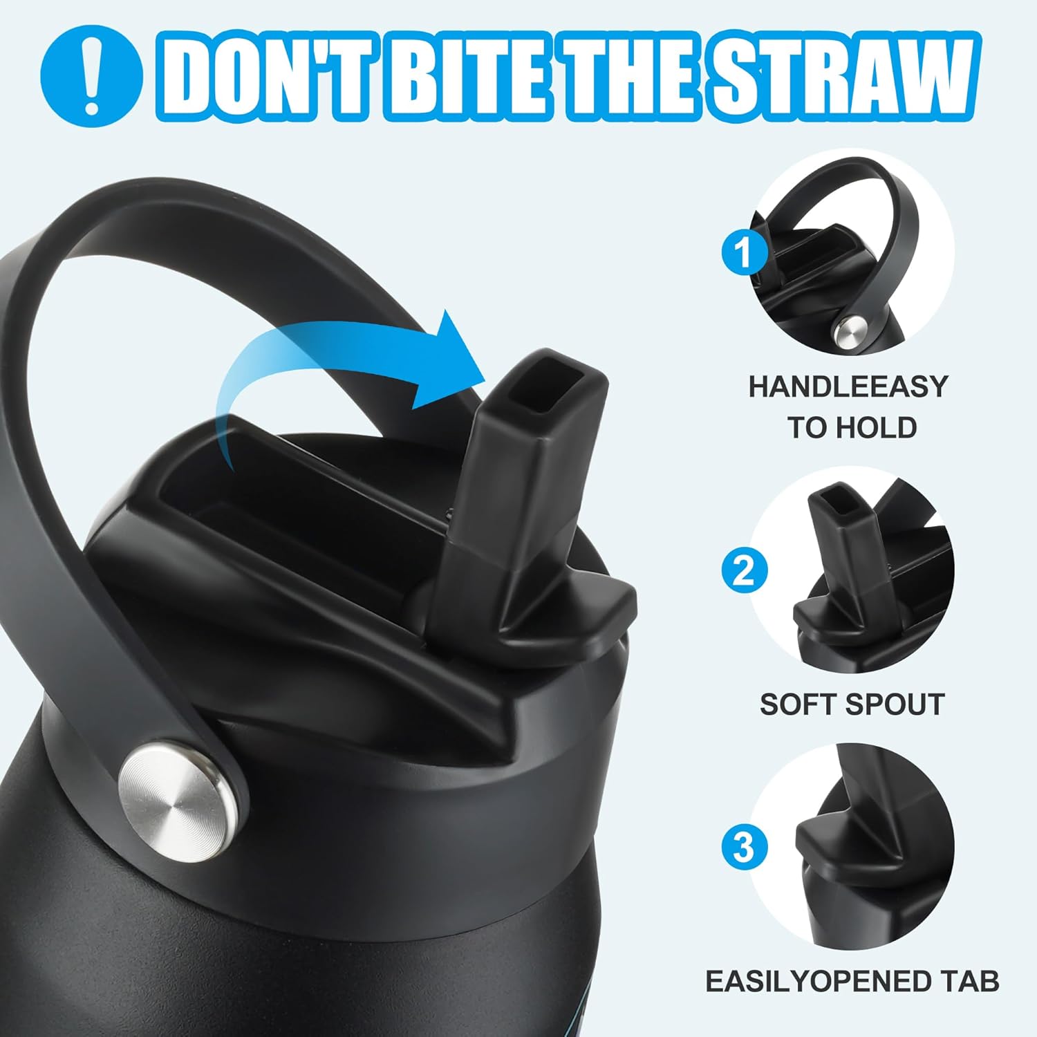 - Easy Hydration On the Move:Sip effortlessly from the spout lid while hiking or racing to class. The non-slip silicone grip and carabiner-ready handle add security for busy days or mountain climbs