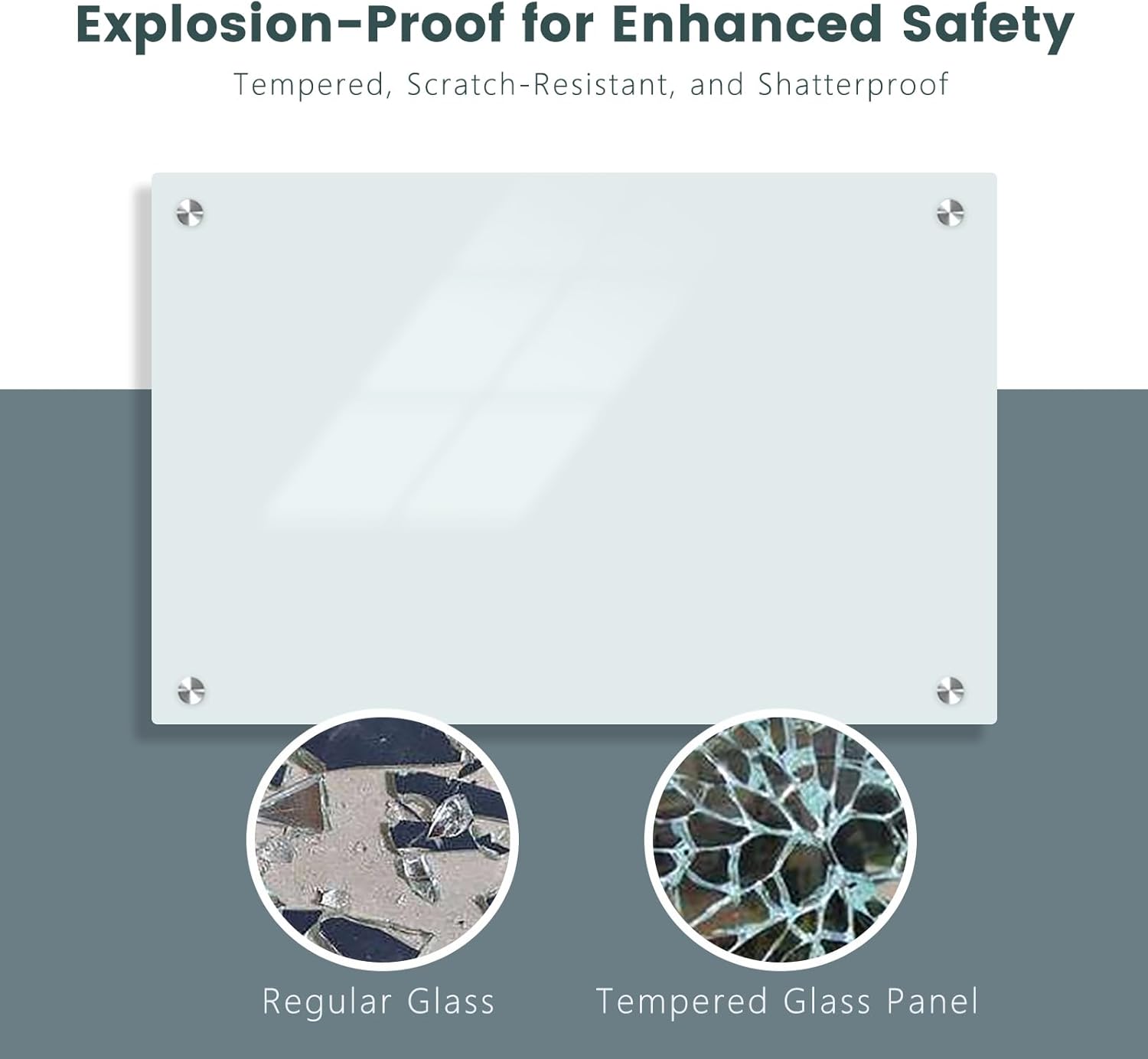 - Multi-Purpose: Glass white boards are suitable for offices, schools, home education, restaurants, cafes, game rooms and other places. The glass white boards for walls making a unique focal point of your space.