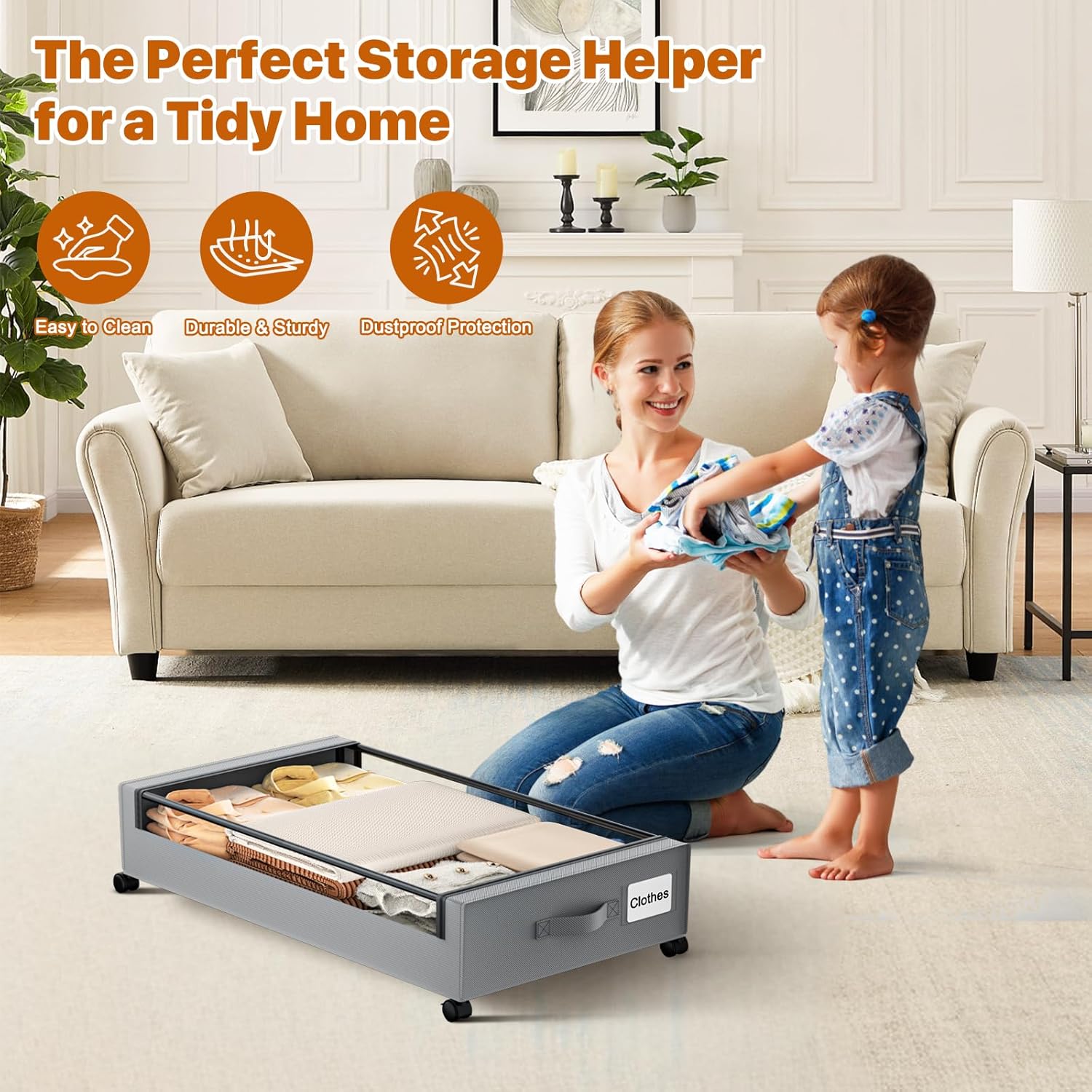 - Transparent Window & Label Design: The rolling under-bed storage bins feature transparent lid windows and label slots, making it easy to identify contents without opening multiple containers. This design helps prevent misstorage and ensures you can quickly locate items. The double zipper bottom and high-quality material keep dust, moisture, and dirt out, keeping your items clean and organized.