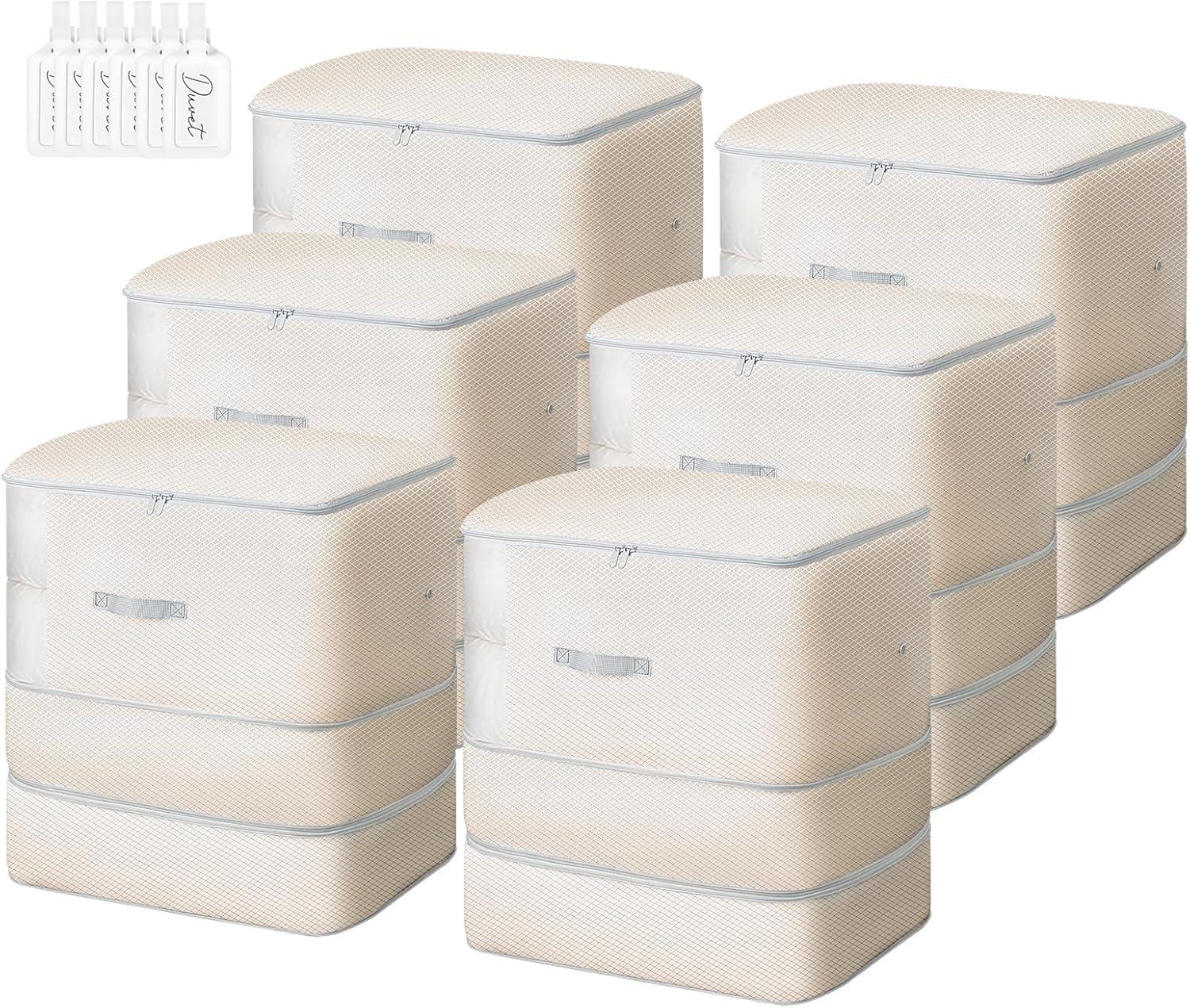 Comforter Storage Bag - 130L Large Capacity Blanket Storage Bags 3-Layer Ultra Space Saving Self Compression Organizer, Washable Compression Bags for Storage Comforter Blanket, 6-Pack, Beige