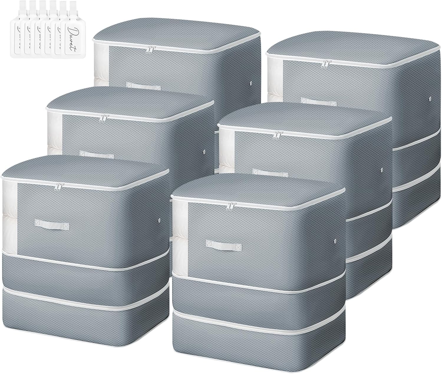 Comforter Storage Bag - Extra Large Capacity Blanket Storage Bags 3-Layer Ultra Space Saving Self Compression Organizer, Washable Compression Bags for Storage Comforter Blanket, 6-Pack, Grey