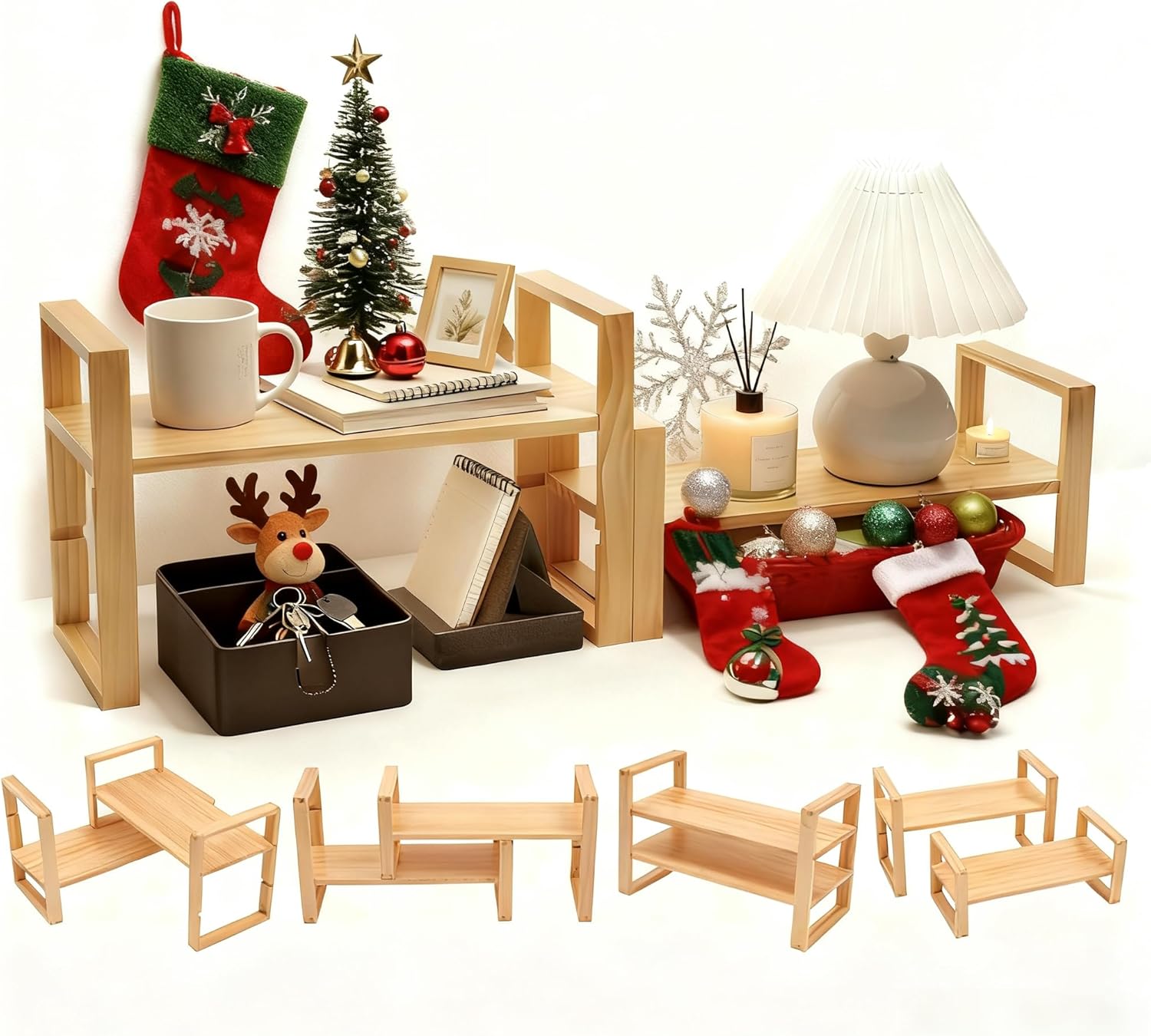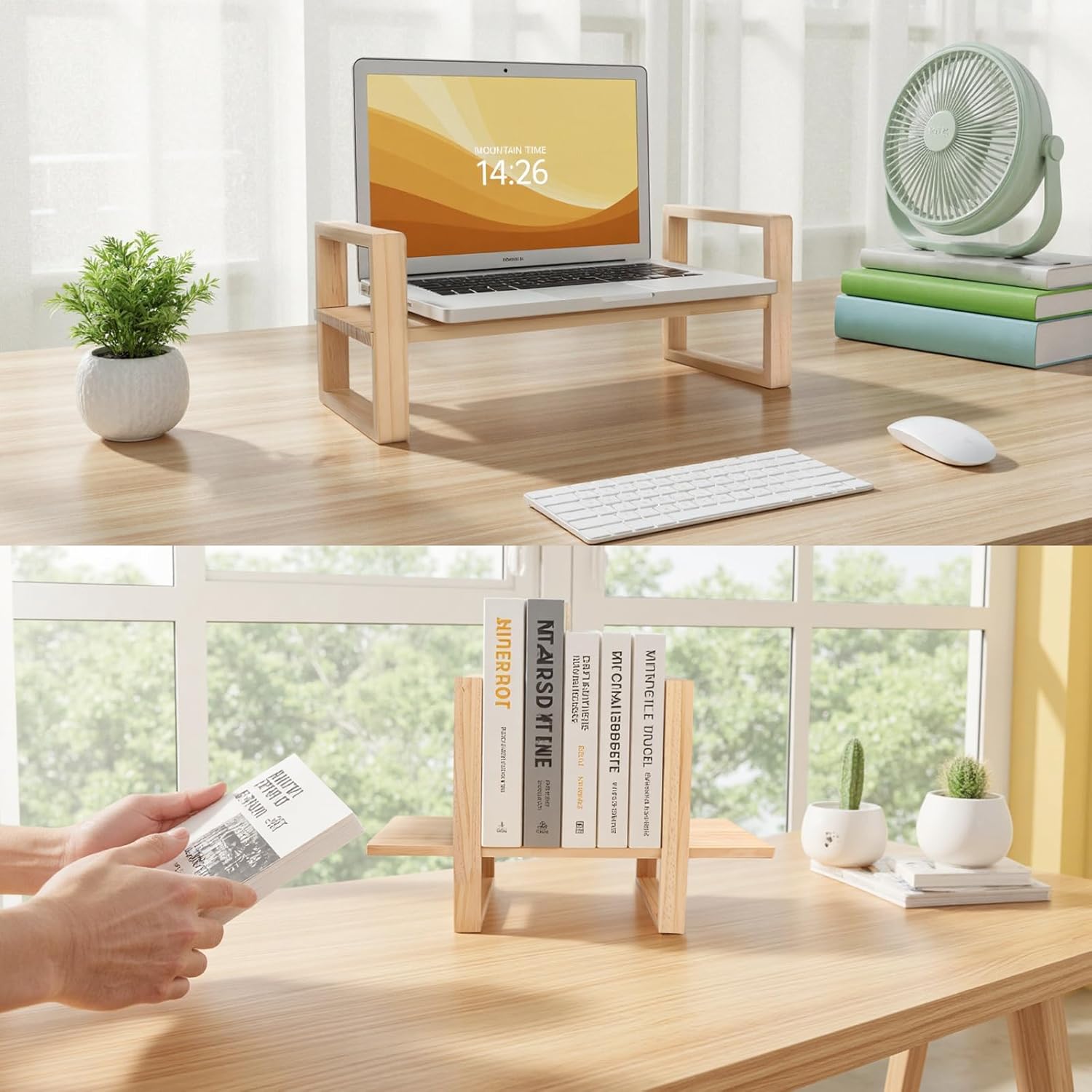 - 【Solid Natural Pine & Moisture-Resistant】: Crafted from beautiful, sturdy solid pine wood with a protective finish, this desktop shelf naturally resists everyday moisture. Use it as a desk organizer shelf for home office, bedroom, living room, and low-humidity bathroom areas