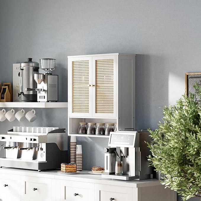 - STABLE & DURABLE - This double door bathroom wall cabinet combines sturdy bamboo and premium MDF construction for exceptional load-bearing capacity without being easily deformed. Featuring an eco-friendly paint finish, breathable rattan door, convenient handle, and reinforced metal wall anchor on the back, it delivers both safety and elegant home decor solutions
