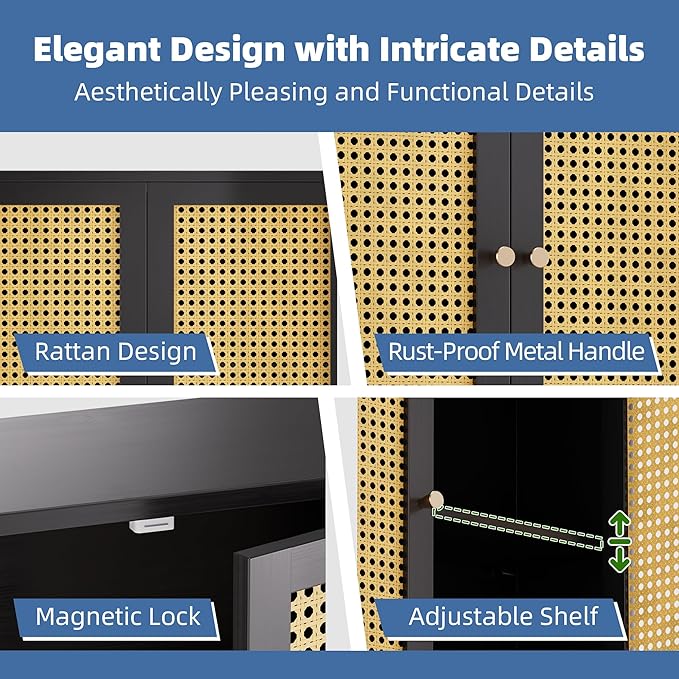 - ADJUSTABLE INNER SHELF HEIGHT - Maximize your storage space with our rattan cabinet. The middle internal shelf can be moved up or down, offering adjustable height positioning within 1.6 inches. This spacious design with flexible storage solutions effortlessly accommodates your daily essentials – whether organizing bathroom toiletries, medicines, or kitchen utensil sets