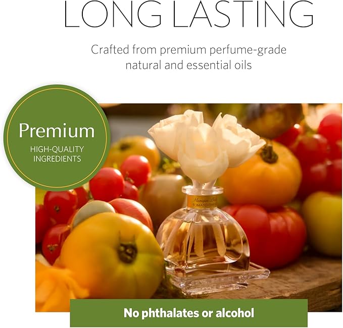- Tomato Oakmoss Diffuser: Unveil a warm, earthy flower and reed diffuser for home layered with bold aromas of heirloom tomato vines, dewy oakmoss, and wild vetiver; lemon zest, smoky clove, and lavender add complexity to our 1.7 oz fragrance diffuser