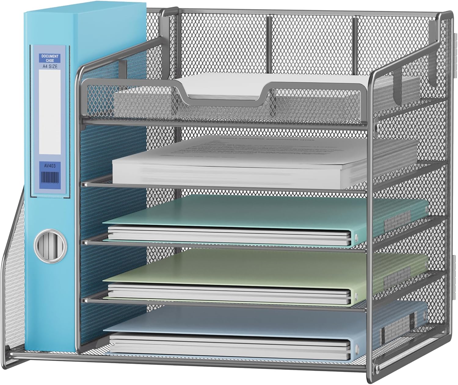 - Multi-purpose Desktop Organizer: This desktop organizer features 5 sliding trays and 2 side file holders, offering vertical storage for all your files, books, A4 papers, and office supplies. Free up over 50% of your desk space and say goodbye to clutter for good
