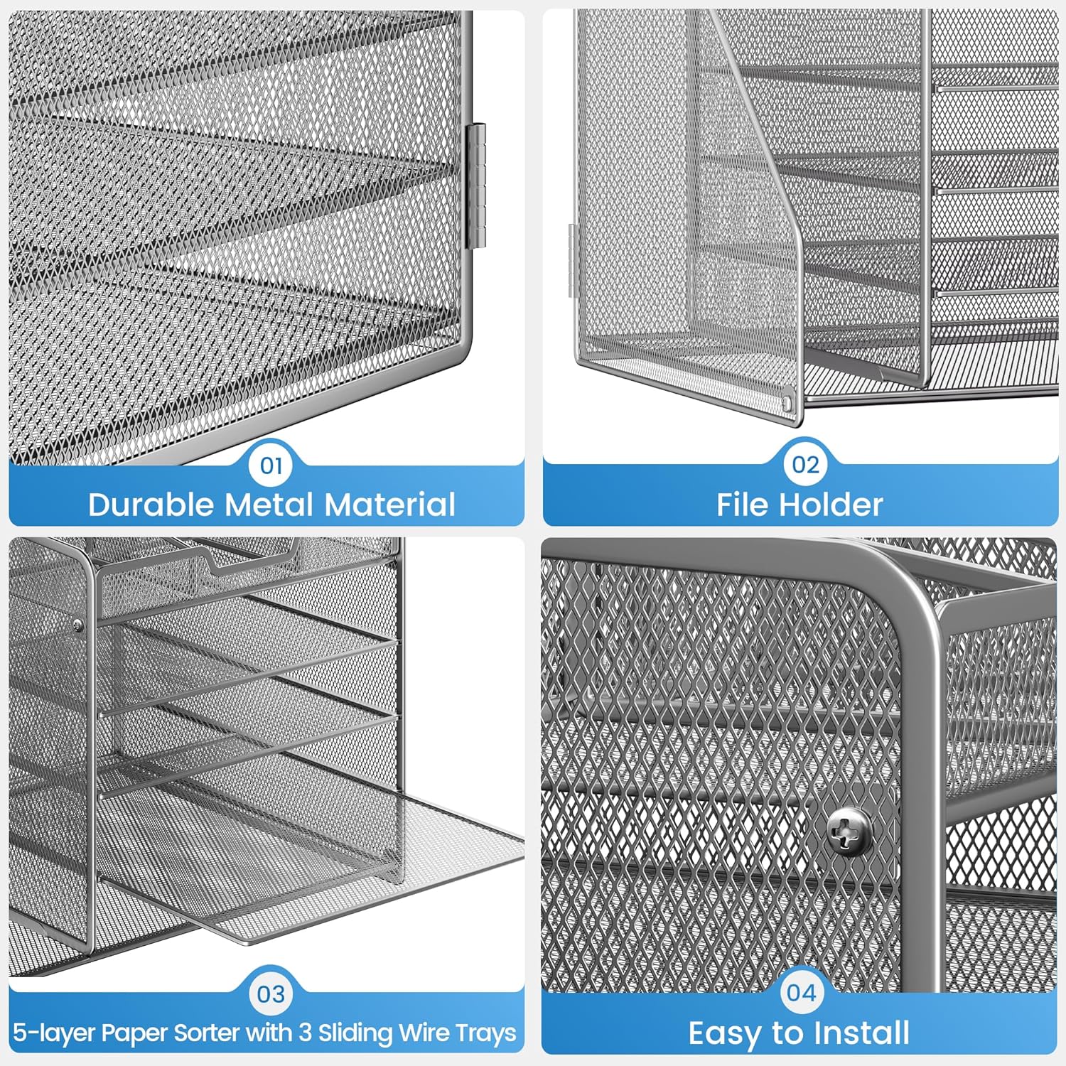 - Durable Build & Sleek Design: Constructed with a reinforced steel frame and streamlined metal mesh, this organizer is not only strong and load-bearing but also adds a modern, industrial touch to your desk. It’s as stylish as it is sturdy