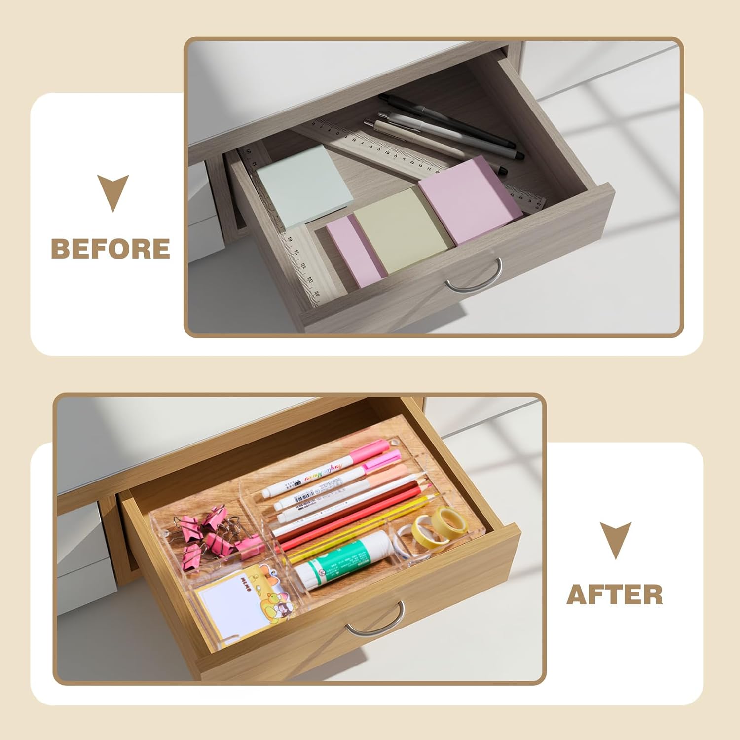 - Ease to Clean: maintenance is a breeze with our office drawer organizer; Simply wipe it gently with a damp cloth to restore it to pristine condition; Acrylic avoids the issues of rotting that can affect wooden or bamboo, ensuring your storage organizer remain as fresh