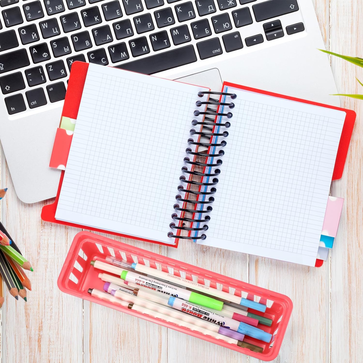 6 Pcs Colorful Slim Plastic Storage Baskets Tray 10 x 3 x 2.5 Inch Compact Stackable Desk Organizer for Office, Classroom, School Supplies, and Home Storage, Organization(Colorful)