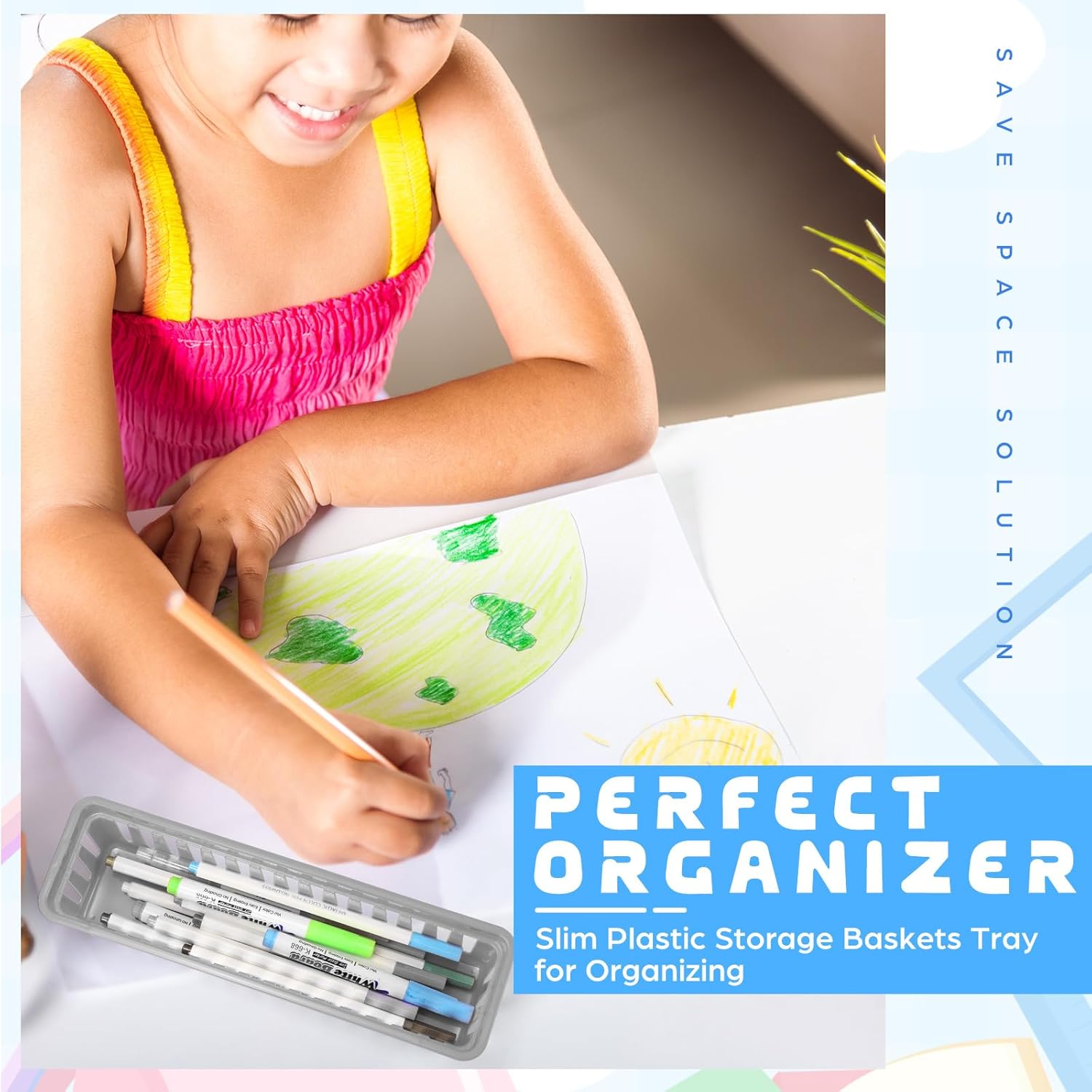 6 Pcs Gray Slim Plastic Storage Baskets Tray 10 x 3 x 2.5 Inch Compact Stackable Desk Organizer for Office, Classroom, School Supplies, and Home Storage, Organization(Gray)