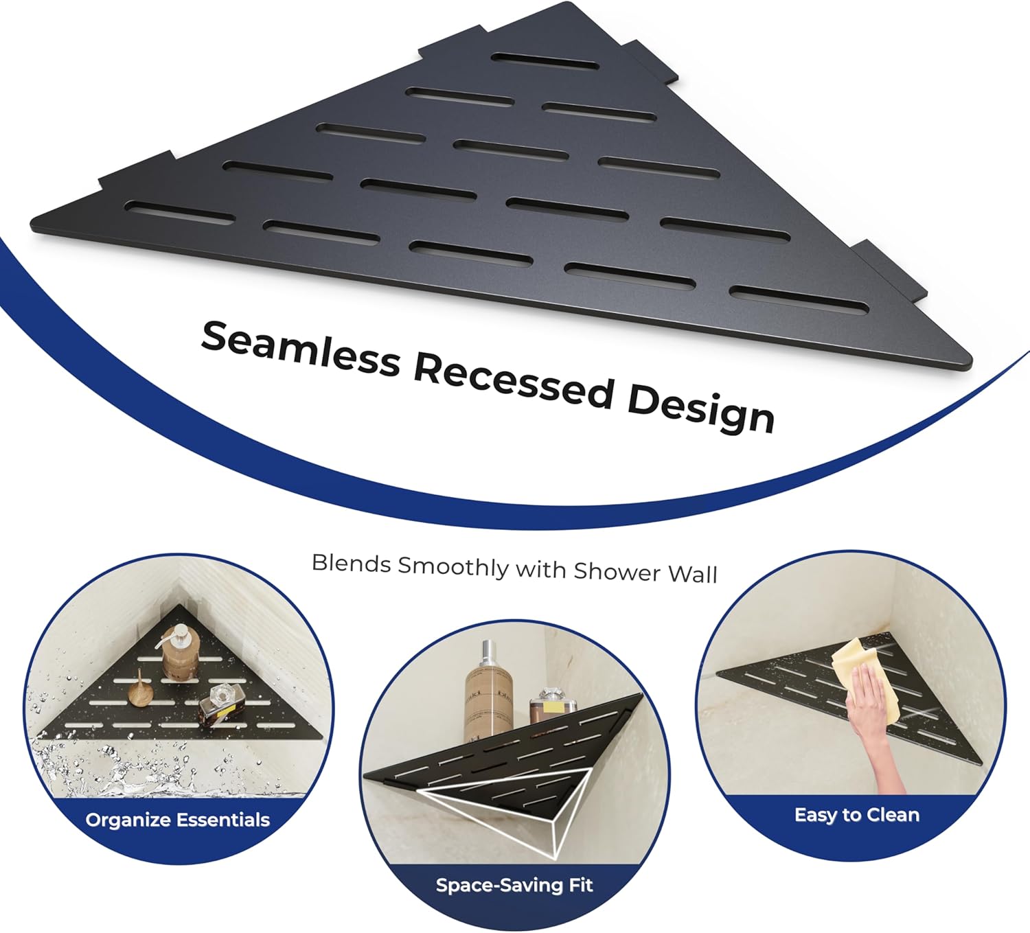 - Fast-draining slot base keeps shower shelves dry and clean, preventing water buildup while maintaining a minimalist look