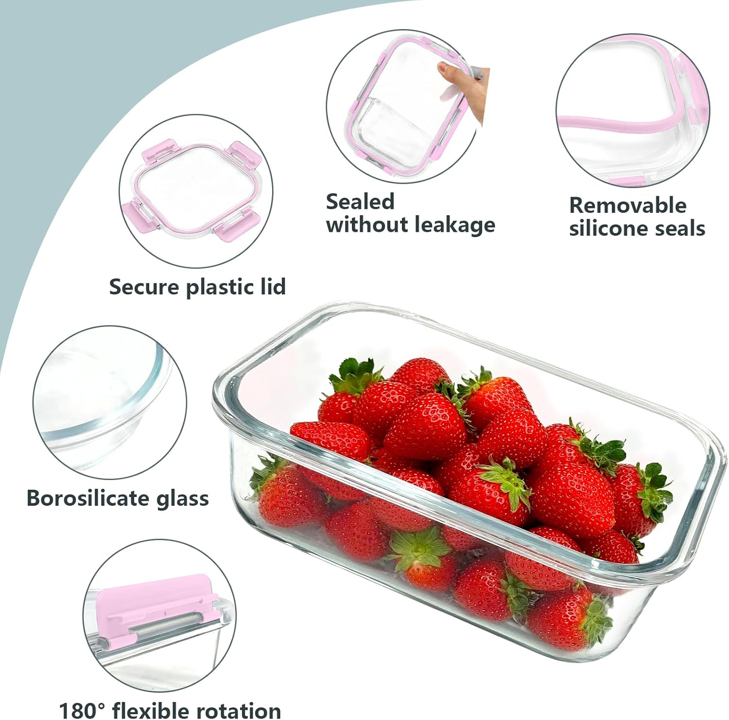 - Material & Usage Tips: Made from Borosilicate Glass, BPA-free plastic, ensuring your food remains safe and healthy. These containers are freezer-safe, microwave-safe, oven-safe, and dishwasher-friendly (please note the lids are not oven, microwave or dishwasher safe). They can withstand temperatures from -4°F to 752°F (-20°C to 400°C), offering convenience for reheating, freezing, and cleaning.